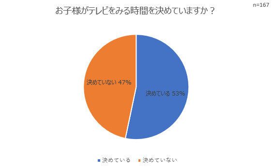 ついだらだら長時間見てしまいがちなテレビ。テレビの視聴ルールはどう決めているのでしょうか? アンケートの回答では、テレビを見る時間を決めている家庭とそうでない家庭は、ほぼ半々のようです。