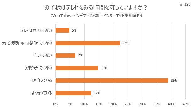 ついつい長く見てしまいがちなテレビですが、今回のアンケートでは子どもは「テレビの視聴時間を守っている」という回答が過半数を占めました。