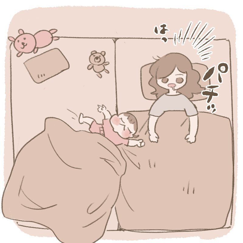 ほっぺちゃんが寝たらやりたいことや、やらなければならないことがいっぱいのママ。「今日は寝落ちしない」と考えながら寝たフリをしていると、隣からかわいいお誘いの声が……!