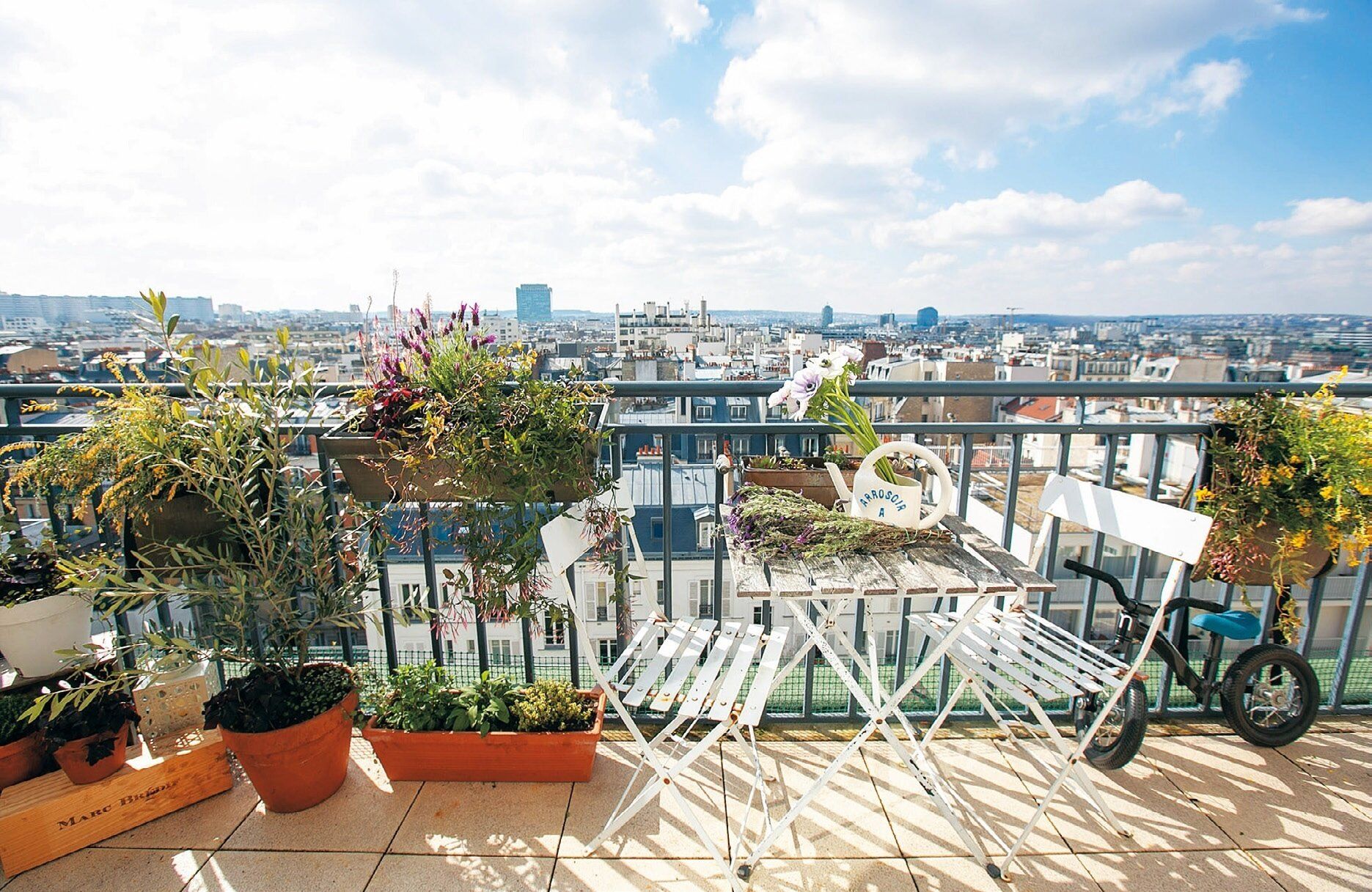 バルコニーから一望できるのは、パリ郊外に広がる街並み。