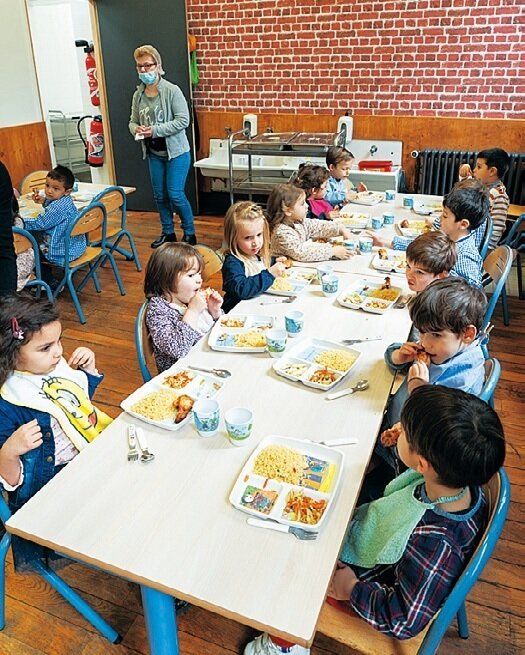 幼稚園の給食も前菜・メイン・デザートとコース仕立て。さすがフランス!