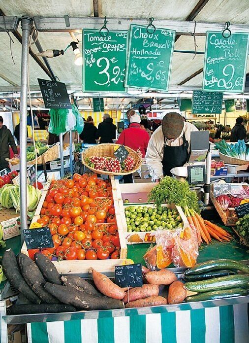 週末はお気に入りのマルシェで肉・魚・野菜を。マルシェカゴはパリっ子の定番。