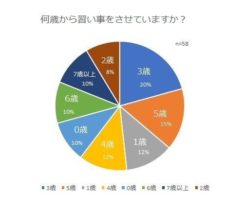 習い事はまだ早いかな?と悩んでいるかたのために、習い事を始めた年齢もアンケートしてみました。