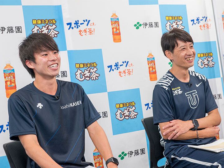 「1回1回の食事ってすごく大切ですし、日々、何を飲むかもすごく重要。長距離の選手たちは貧血になりがちです。健康ミネラルむぎ茶はカフェインが含まれていないので、鉄分の吸収を妨げません。ゴクゴク飲んで奪われた水分とミネラルを同時に補給できる。私たちに必須なんですね」(酒井監督)