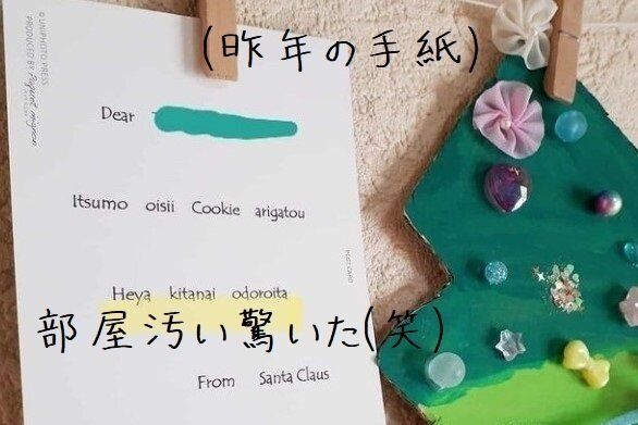 インターネットで探すとたくさんの「サンタさんからの手紙」の文案を見つけることができます。その中で、きれい好きなサンタさんからの手紙というものをネットで見かけたので、それを参考にして、我が家でも用意しました。