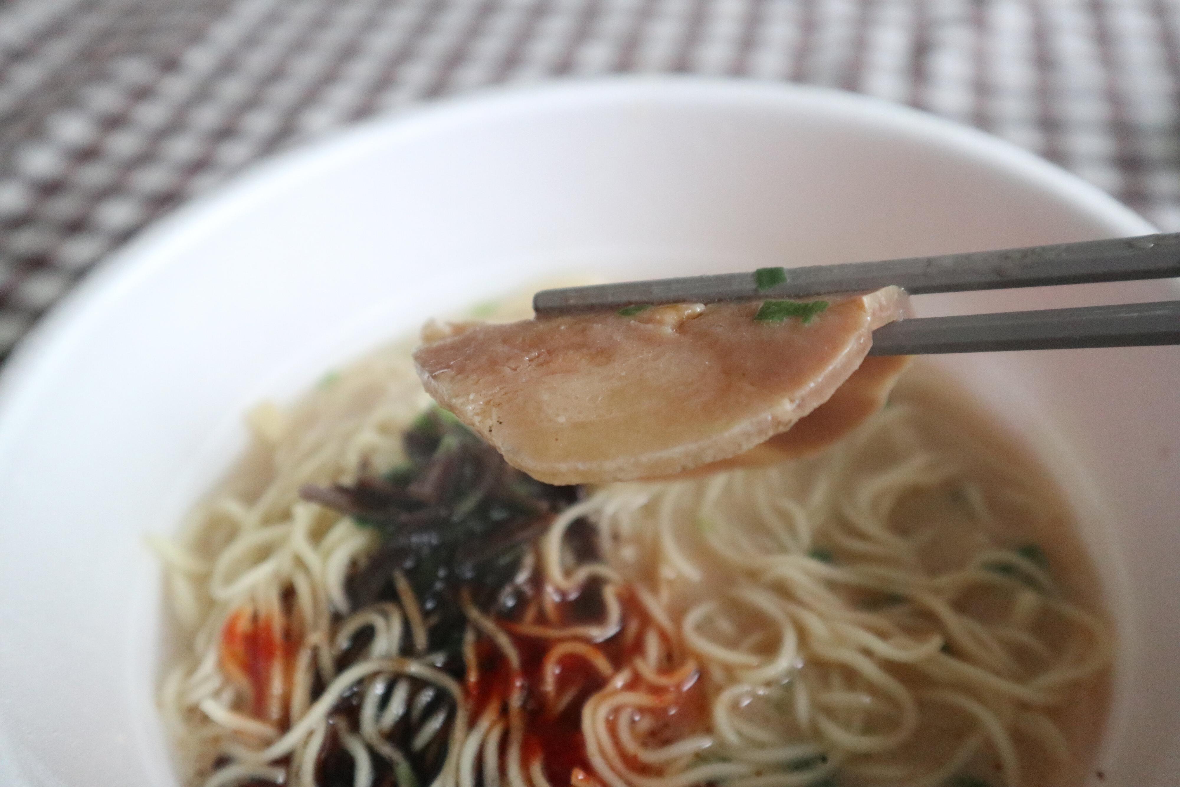 カップ麺とは思えない焼豚の厚みと大きさには驚きます。これがカップ麺だなんて…と進化に衝撃を受けます。
