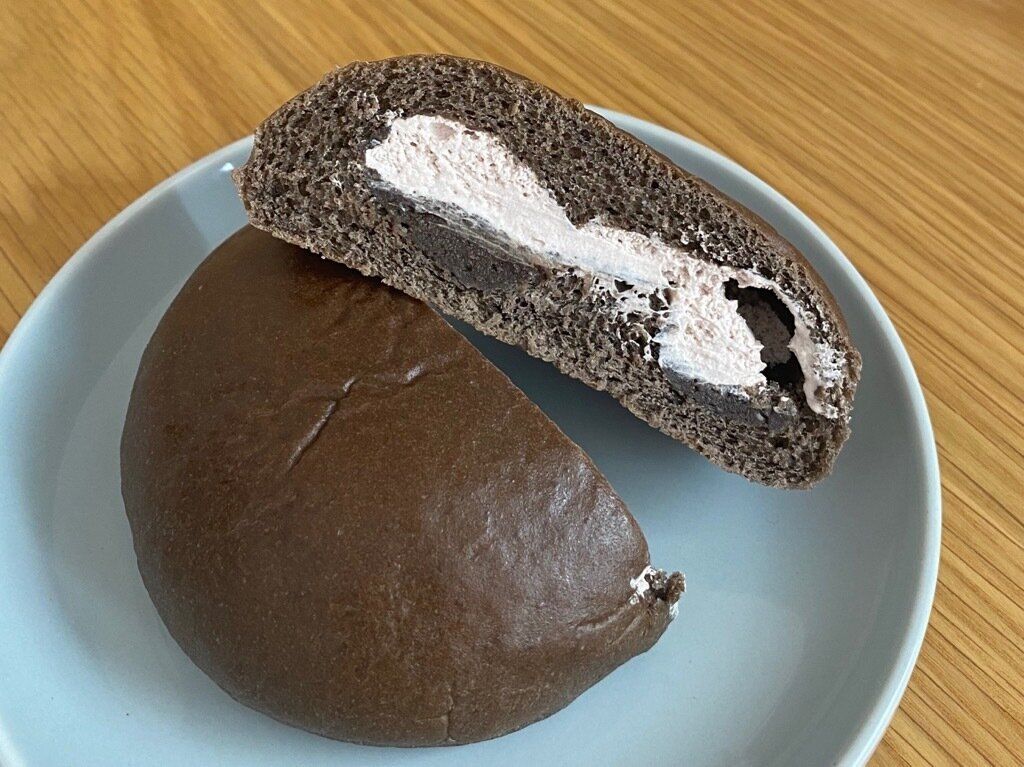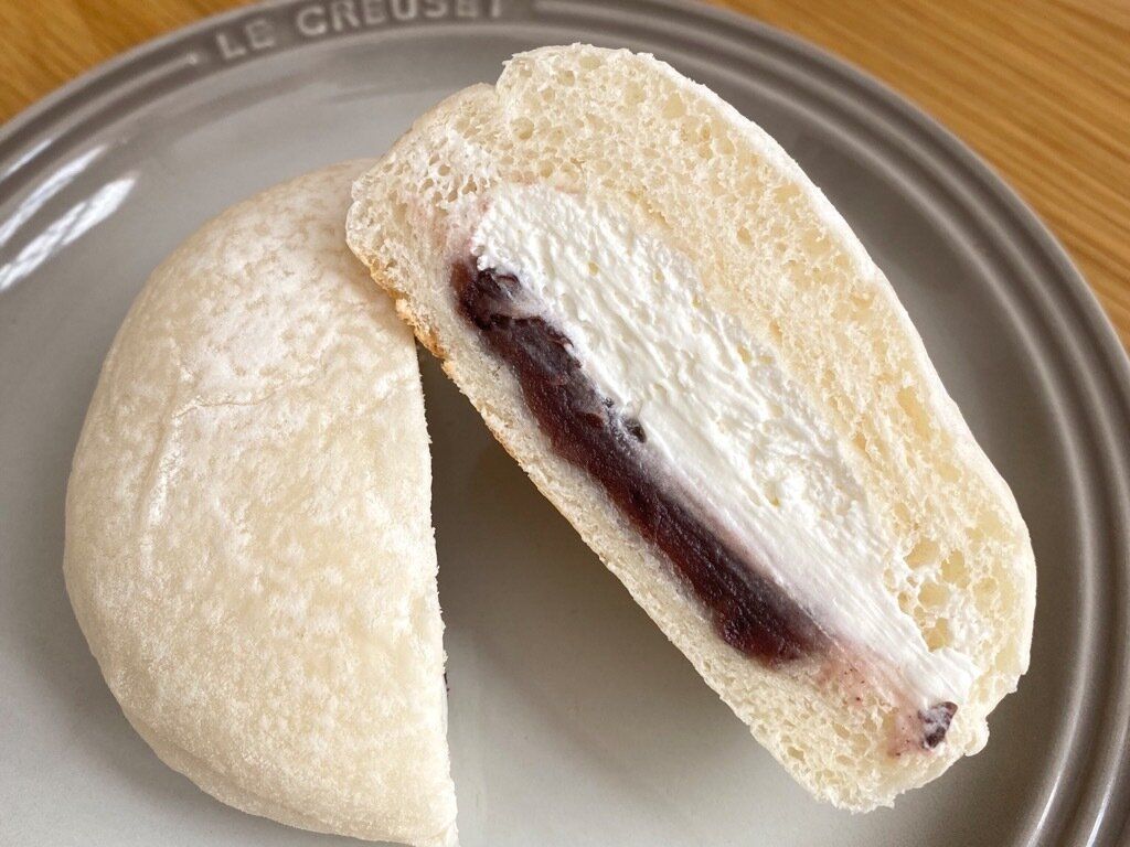 持ち上げた時はパンがふわふわとした印象でしたが、食べてみるともっちりと弾力のある食感で食べ応えがあります。あんは甘さ控えめ、あずきの風味とクリームチーズのクリーミーな味わいが意外と合っていて驚き。