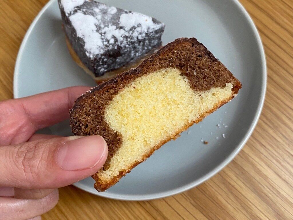 ケーキ生地は表面が少しサクっとしていますが全体的にしっとり食感。コーティングのチョコレートとも相性抜群です。