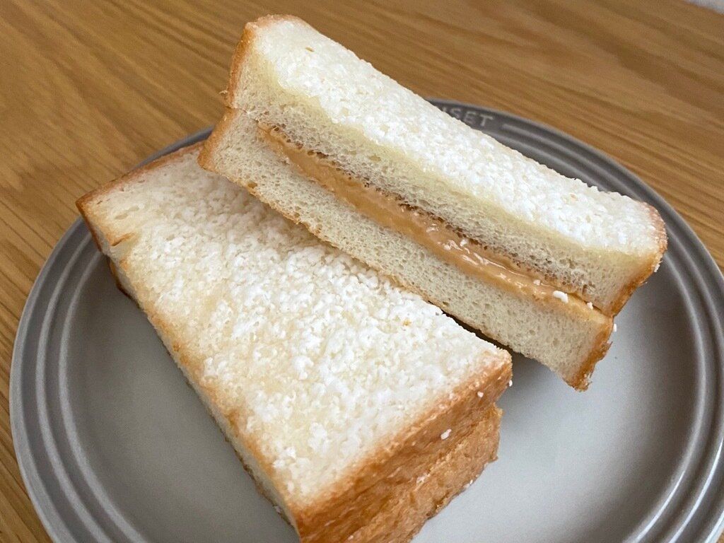 厚めにカットした超熟食パンで塩をプラスしたキャラメルクリームをサンド。