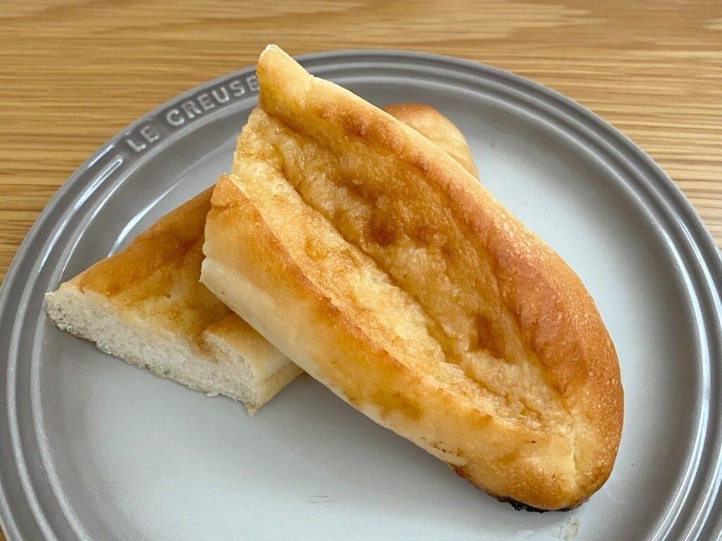半分食べたところでリベイク(焼き直し)してみましたが、これが大正解。表面はカリっと、中はフワフワの食感になり、リベイク前と全く違うパンに変化します。