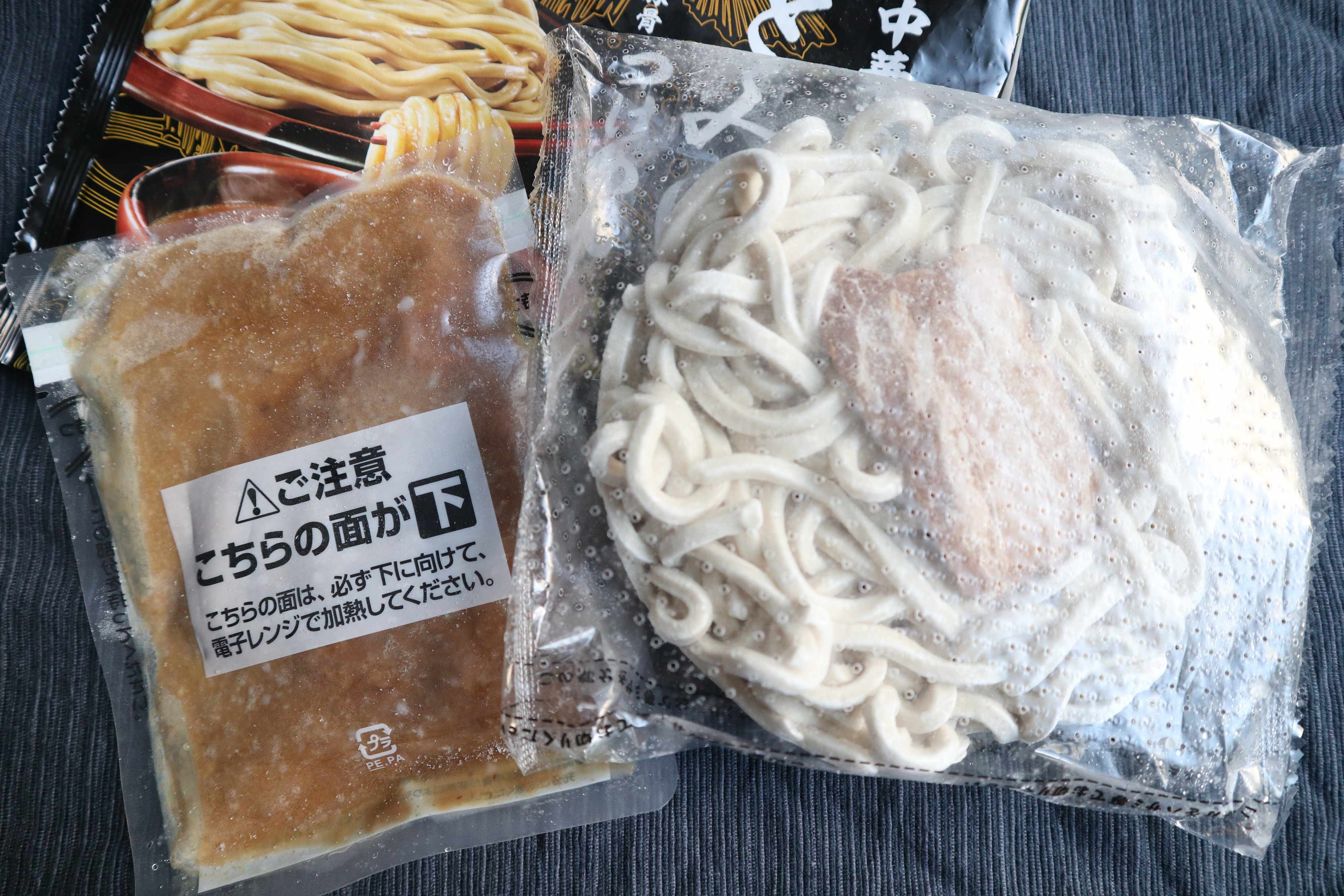 スープと麺(チャーシュー入り)は分かれており、それぞれ電子レンジで加熱します。お鍋を使わないので、洗い物が少なくすむのでうれしい。