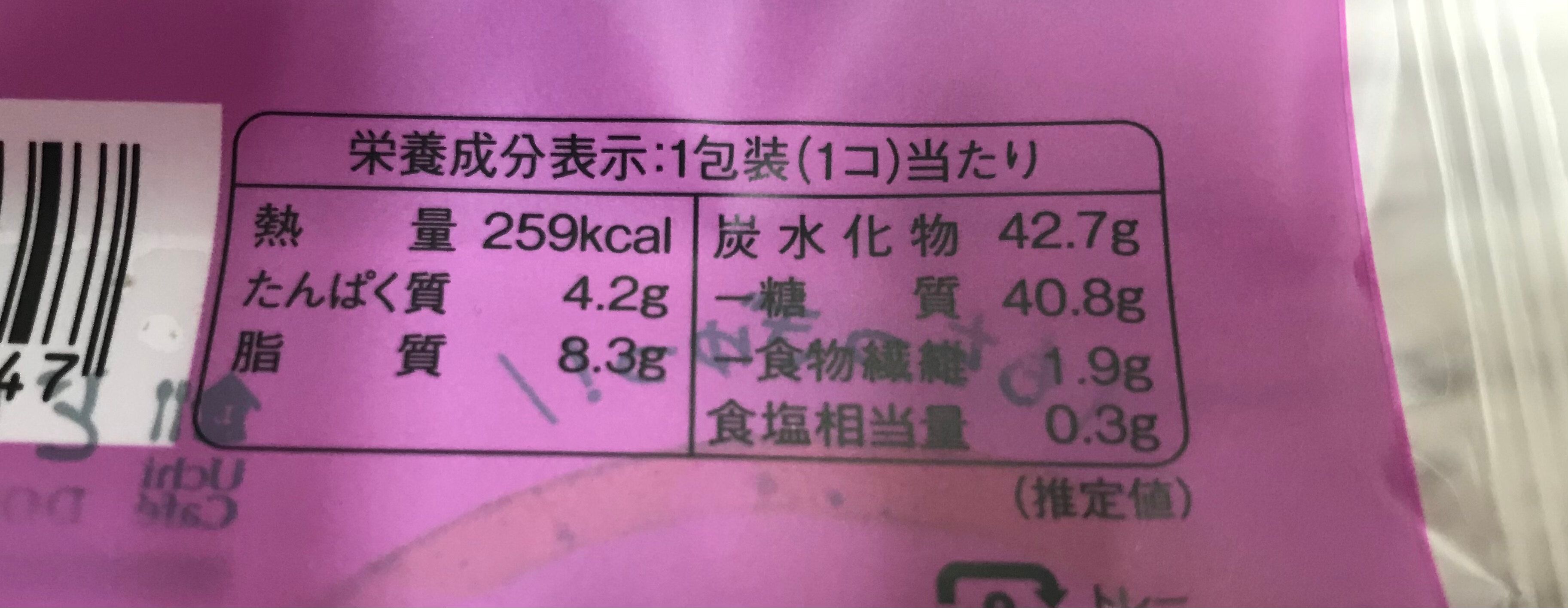 栄養成分表示はこのような感じです。カロリーは259kcalです。