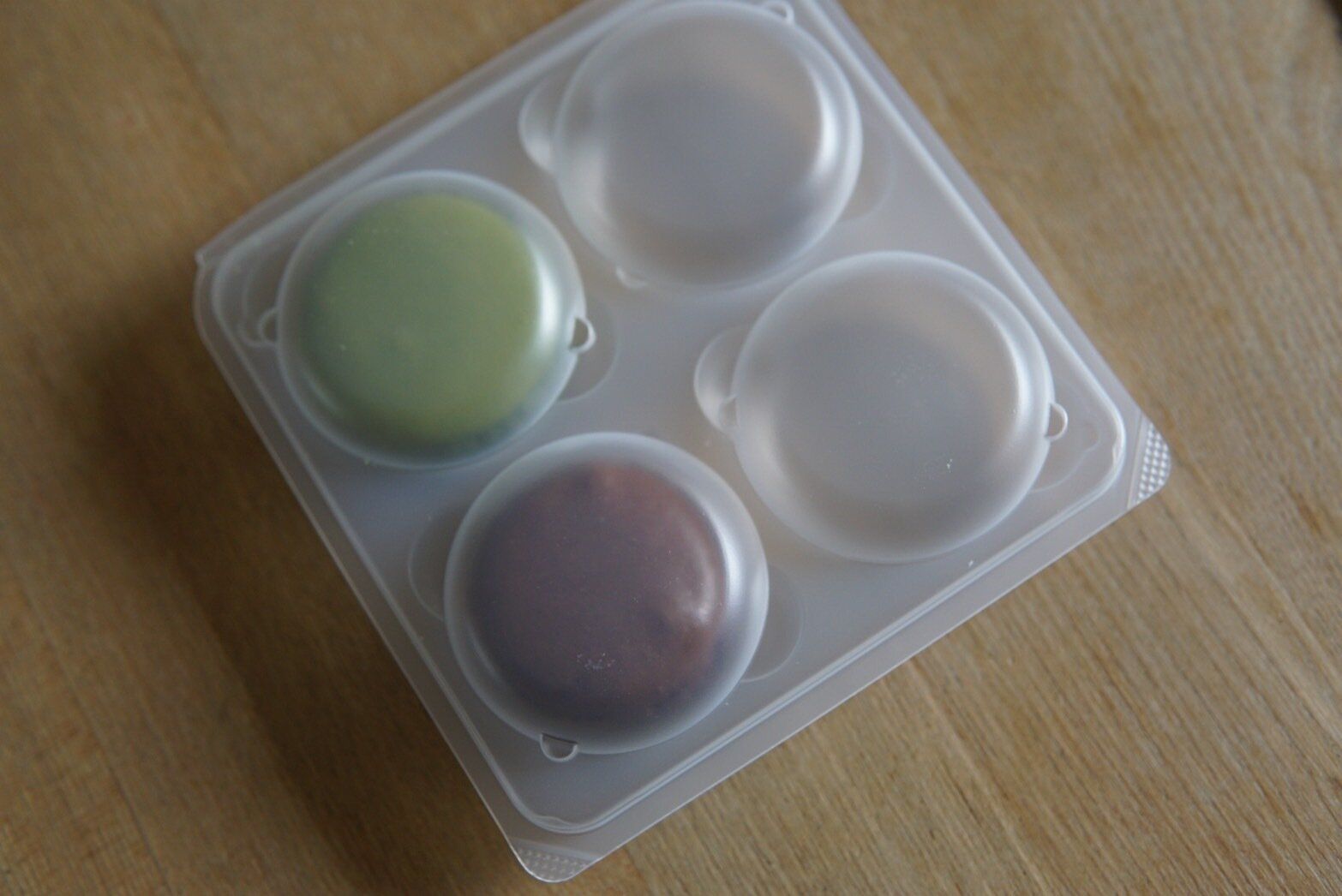 ねっとり感が少ないのは残念ですが、それぞれのフレーバーもしっかりと感じられ、値段も1個あたり108円ほどと2個230円の定番マカロンと比べて若干安くなっています。