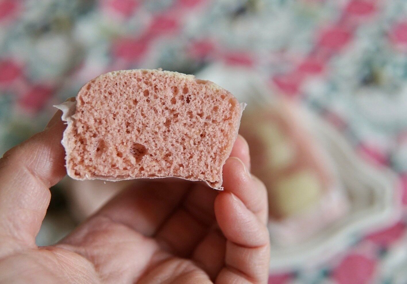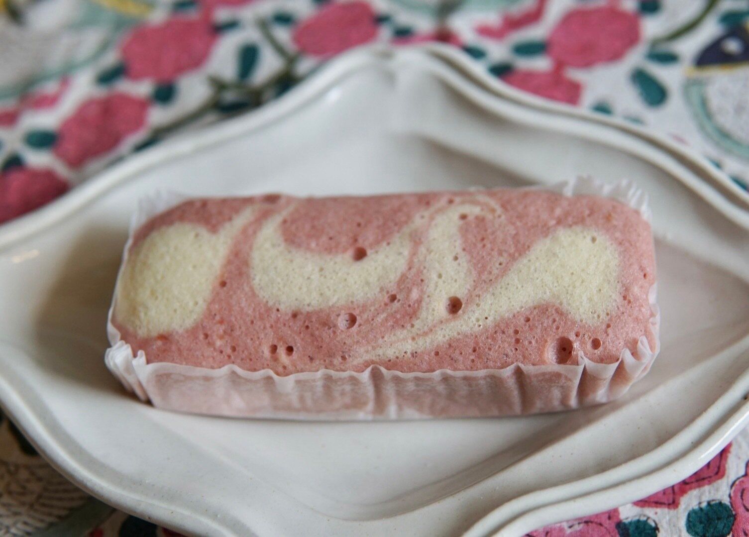 表面のマーブル柄の美しさに惹かれます。開封すると、いちごの甘い香り。低糖質なだけあって甘さは控えめですが、それが優しい味わいで美味しいです。 しっとりと柔らかく、ほのかにいちごの甘酸っぱさも感じる蒸しケーキです。