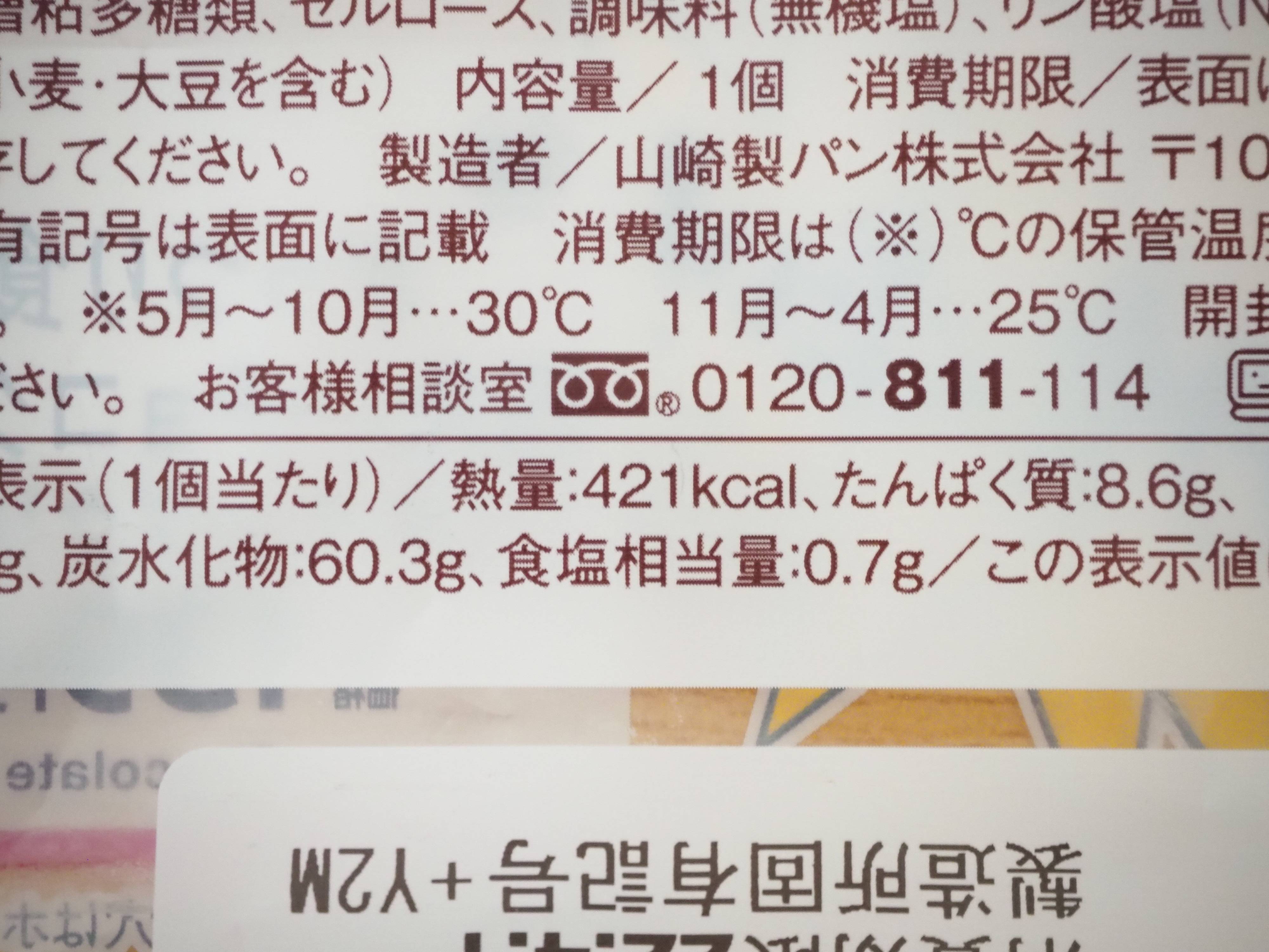 製造者は山崎製パン。カロリーは421kcalなので、コンビニで扱う菓子パンの中ではがっつり級のカロリーになるかもしれません。