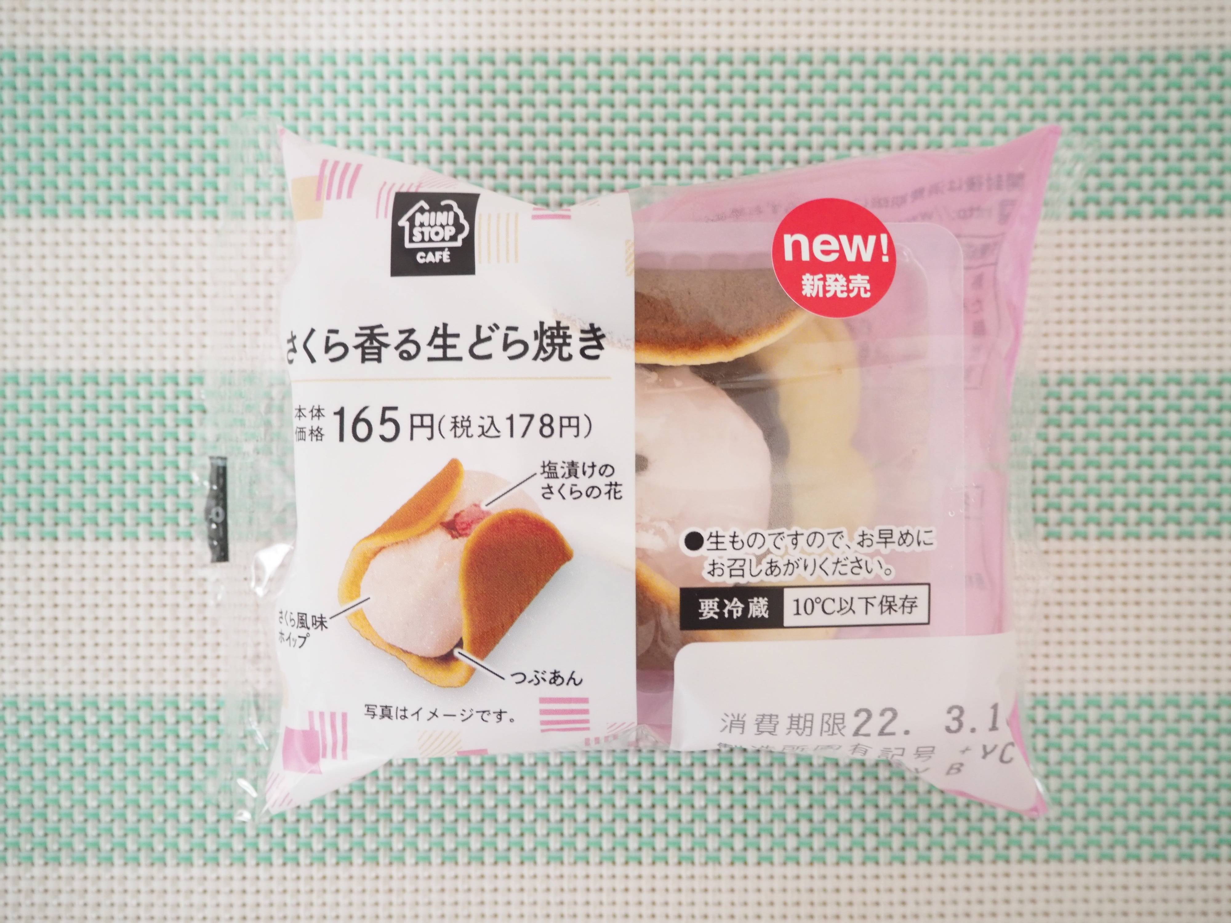 こちらが「さくら香る生どら焼き」で、価格は178円。冷蔵スイーツコーナーで見つけることができました。