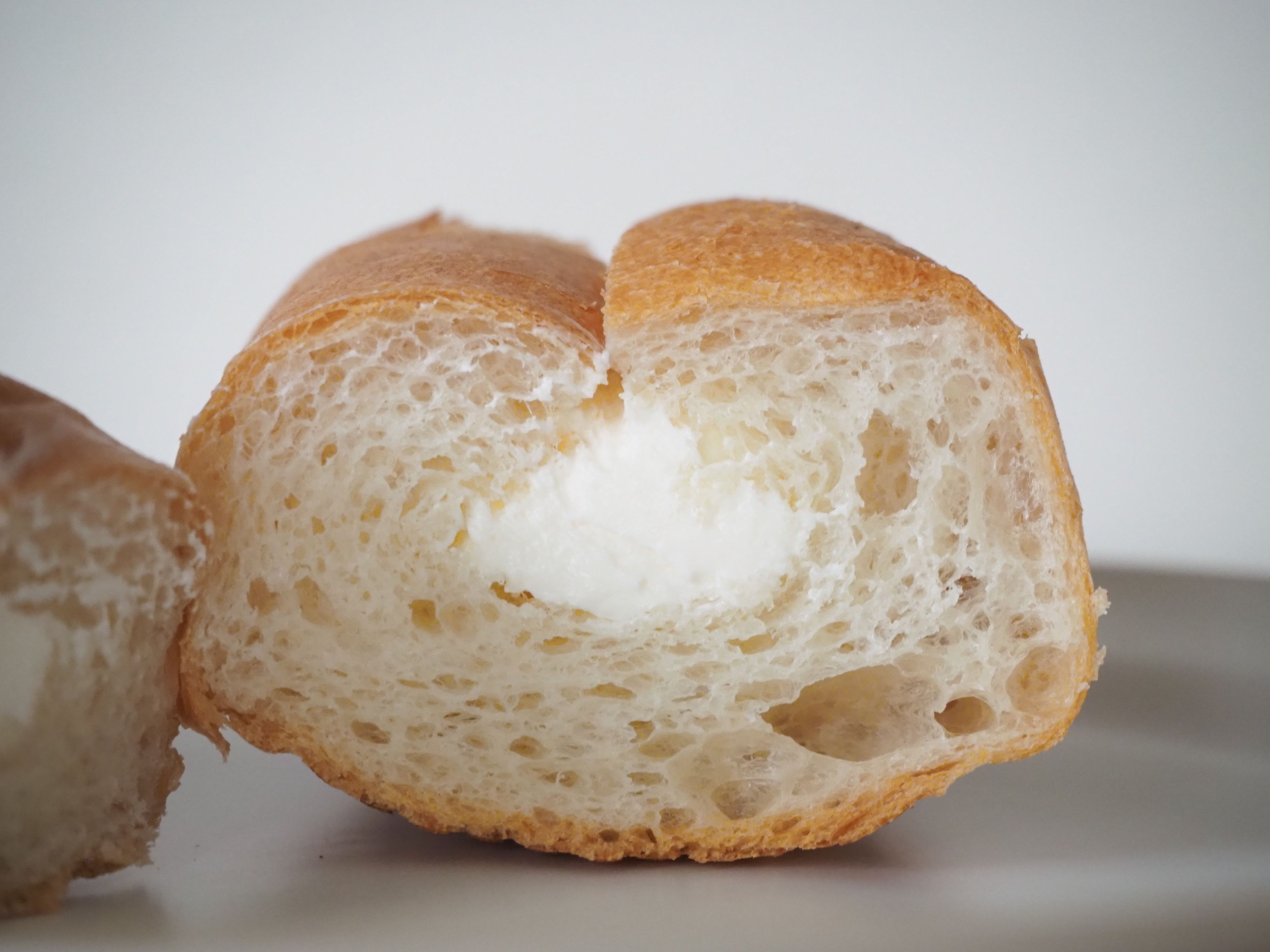クリームが端までしっかり入っているので、最後の一口までおいしく食べられそう!フランスパンらしい割れた表面にも期待が高まります。