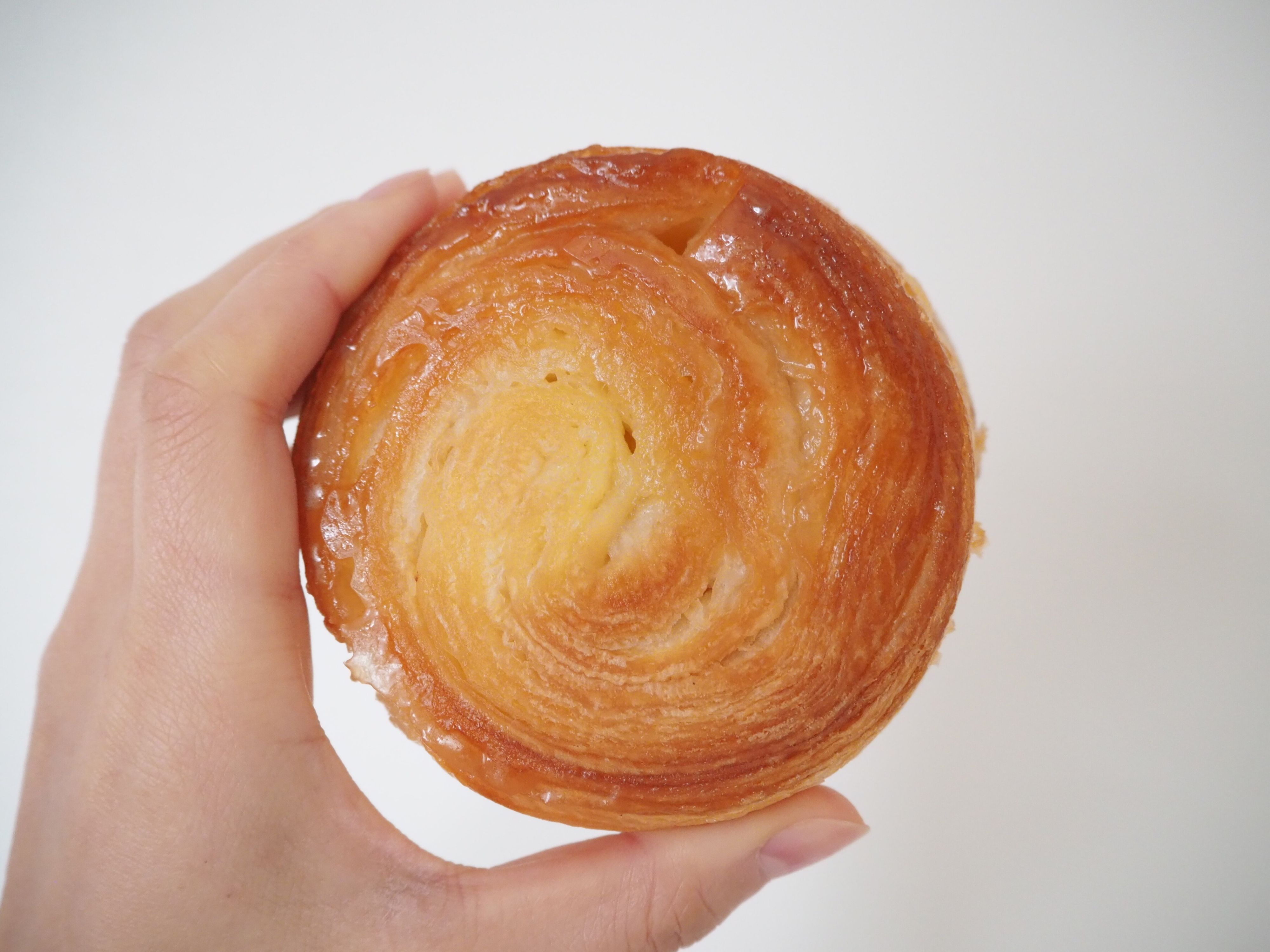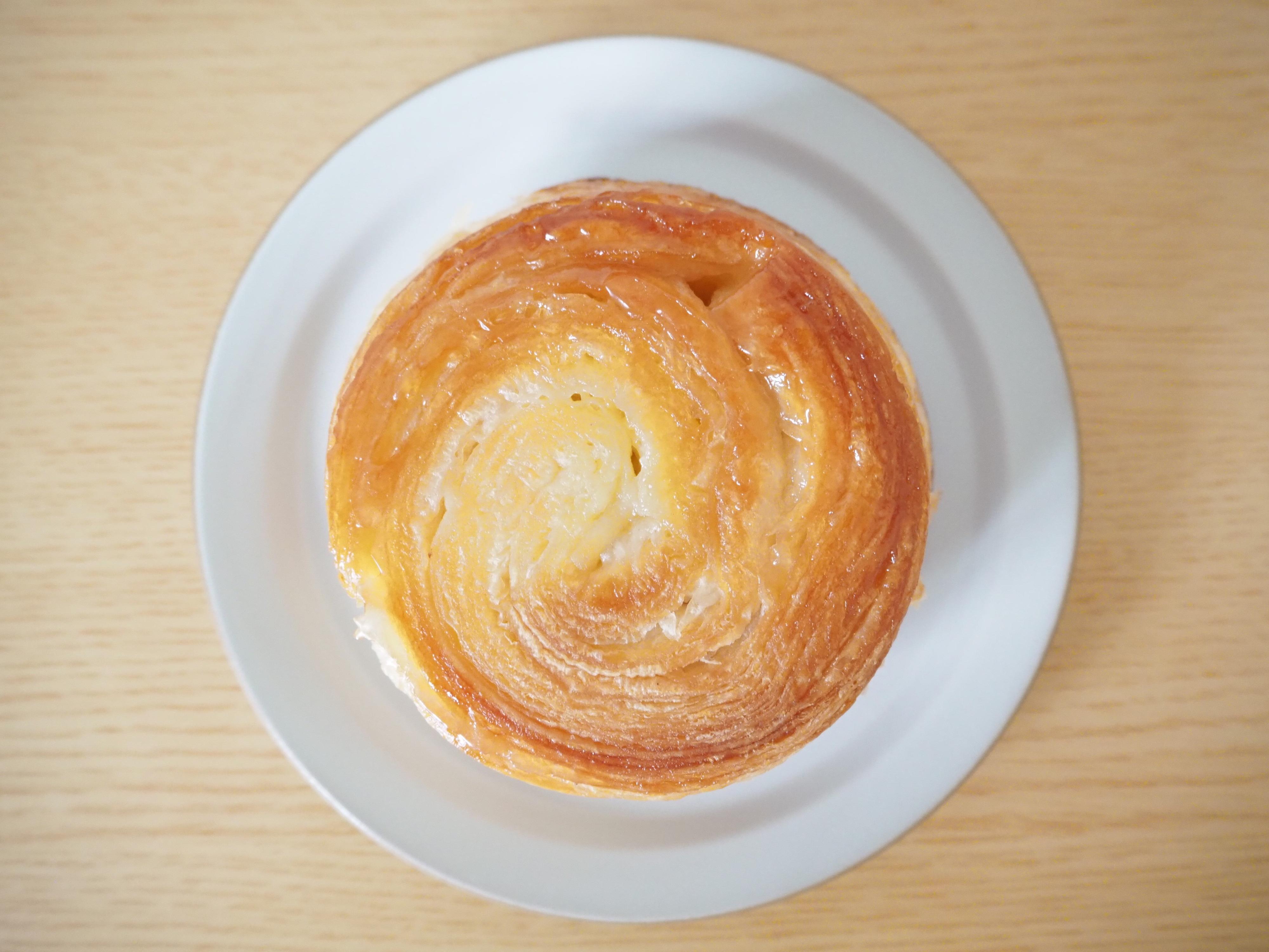 早速取り出して確認してみます。上から見ると、薄い生地が何層にも渡って重なり合っているのがわかります。飴状になった表面はつややかでおいしそう…!