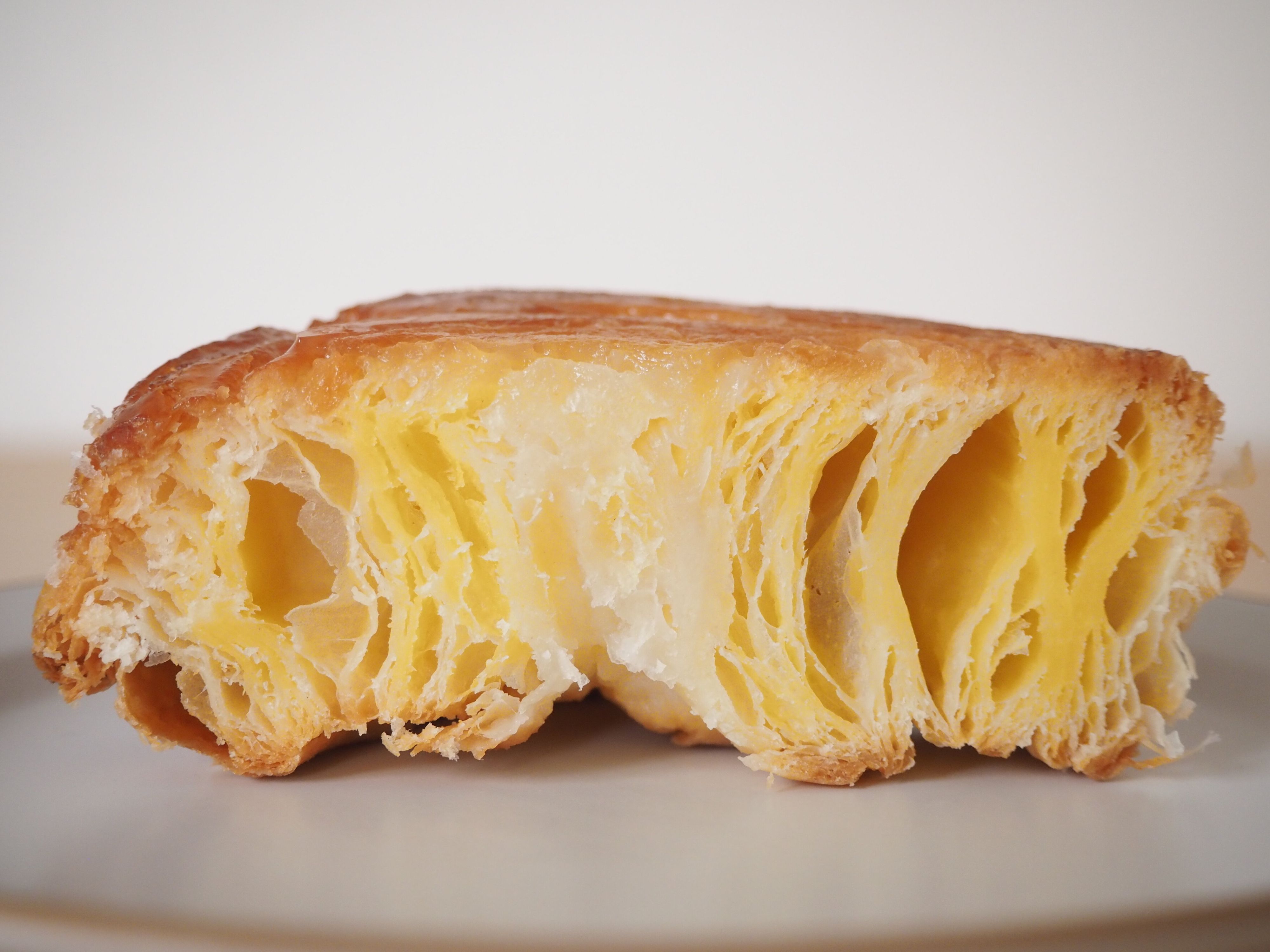 名称は洋菓子となっていますが、常温のパンコーナーで見つけました。クイニーアマンと言えば、たっぷり入ったバターが特徴の1つですが、こちらの製品にもしっかりバターが入っています。