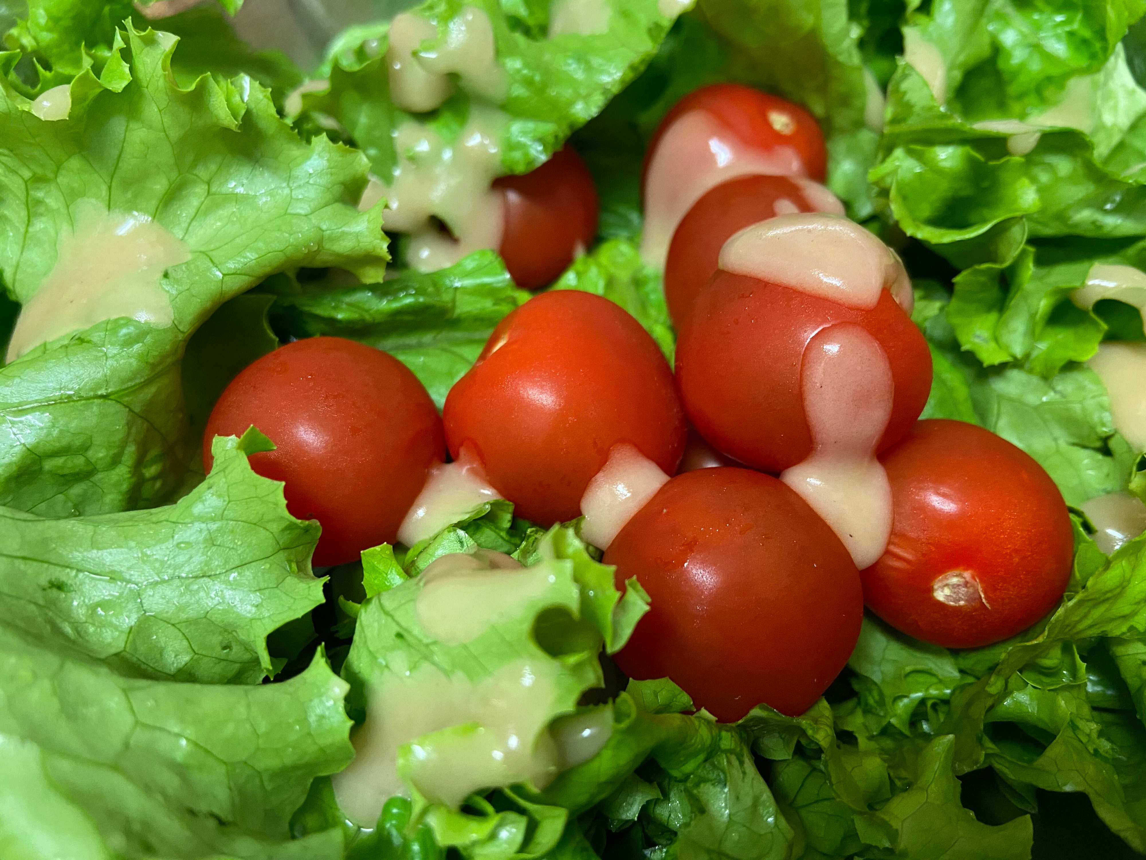 エマルジョンとは「乳化」という意味なんだそう。玉ねぎのすりおろしがたっぷり入ってしっかりとろみのあるドレッシングはにんにくの風味と酸味も効いて、とってもおいしい!くせになる味わいで野菜をもりもりおいしく食べることができます。