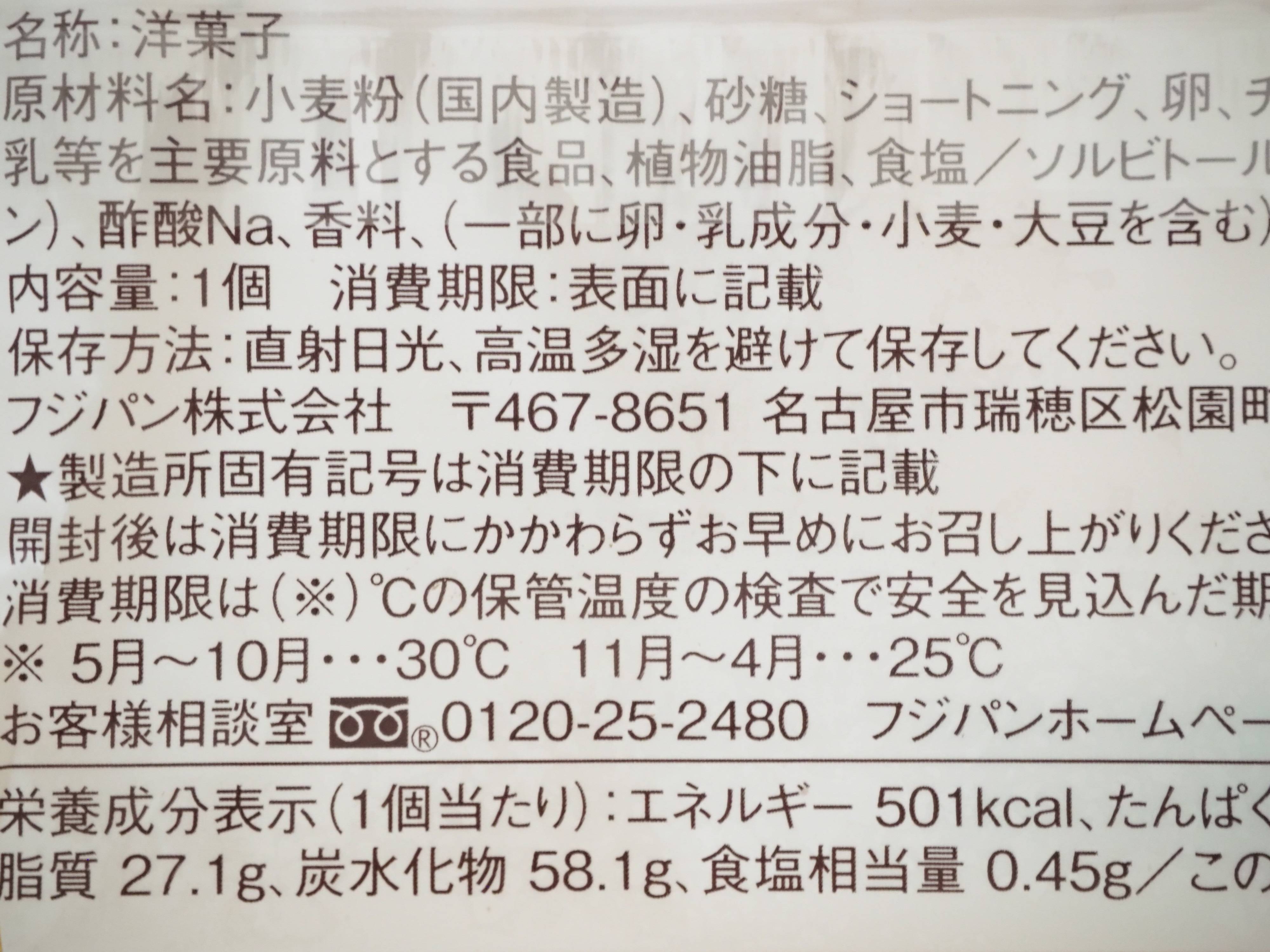 「本仕込」や「ネオバターロール」を製造しているフジパンが製造を担当しています。名称を確認すると洋菓子とあるので、焼き菓子に近いのかもしれません。