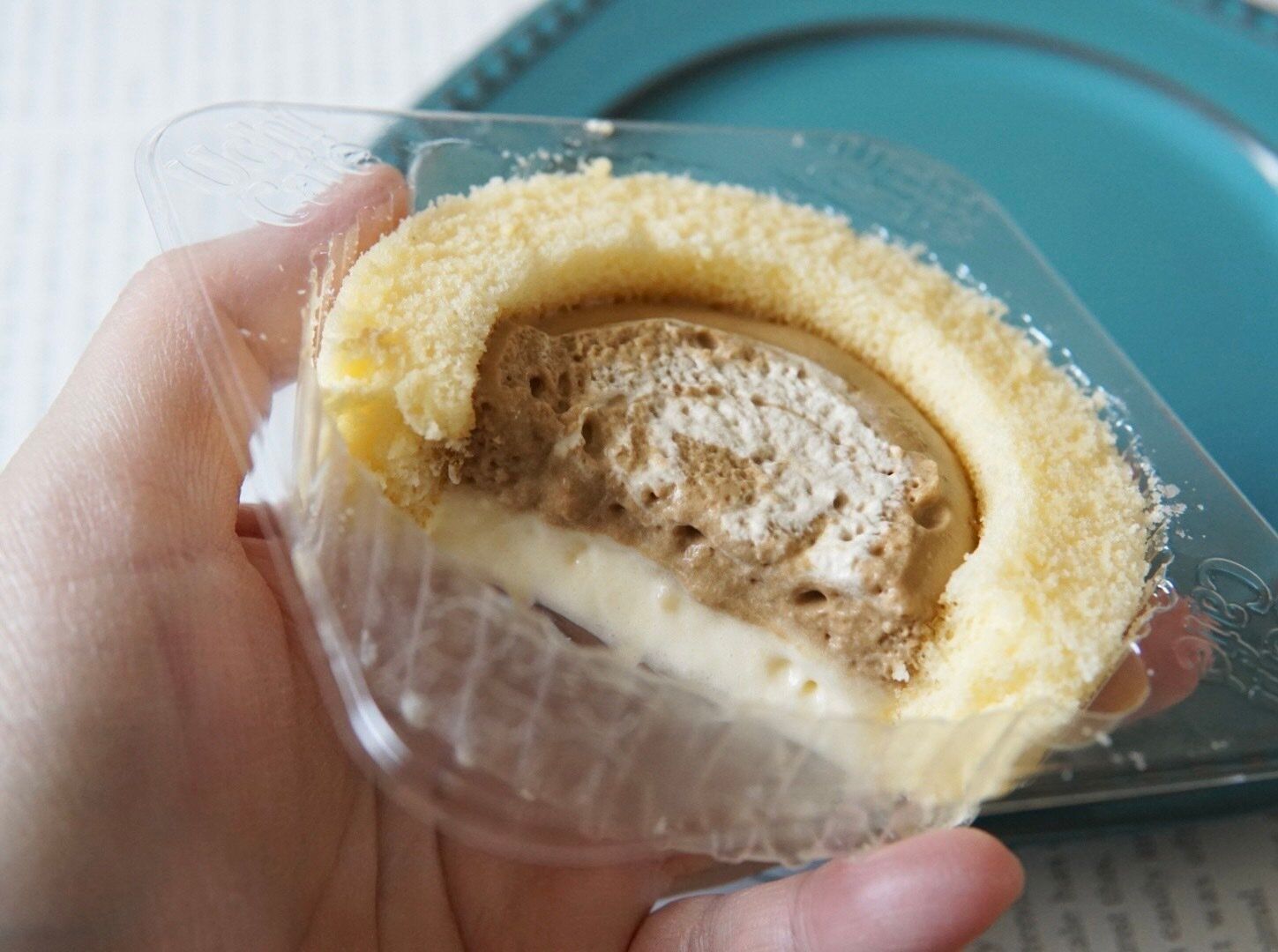 ローソンのロールケーキが美味しいのは周知の事実ですが、珈琲のほろ苦さやコクがプラスされているところが新しい味の発見だなと感じています。