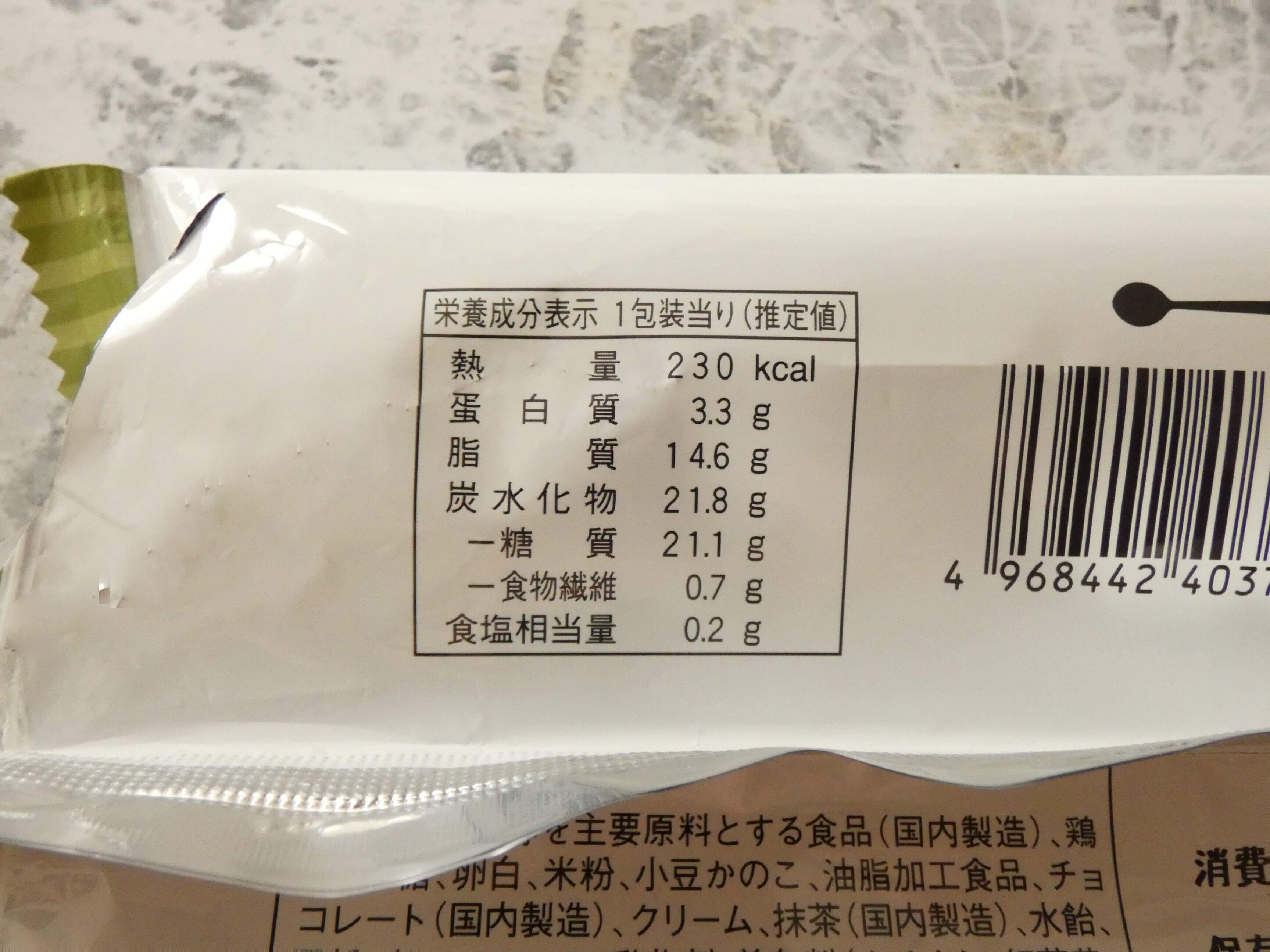 栄養成分表示を見ると1個のエネルギーは230kcal。