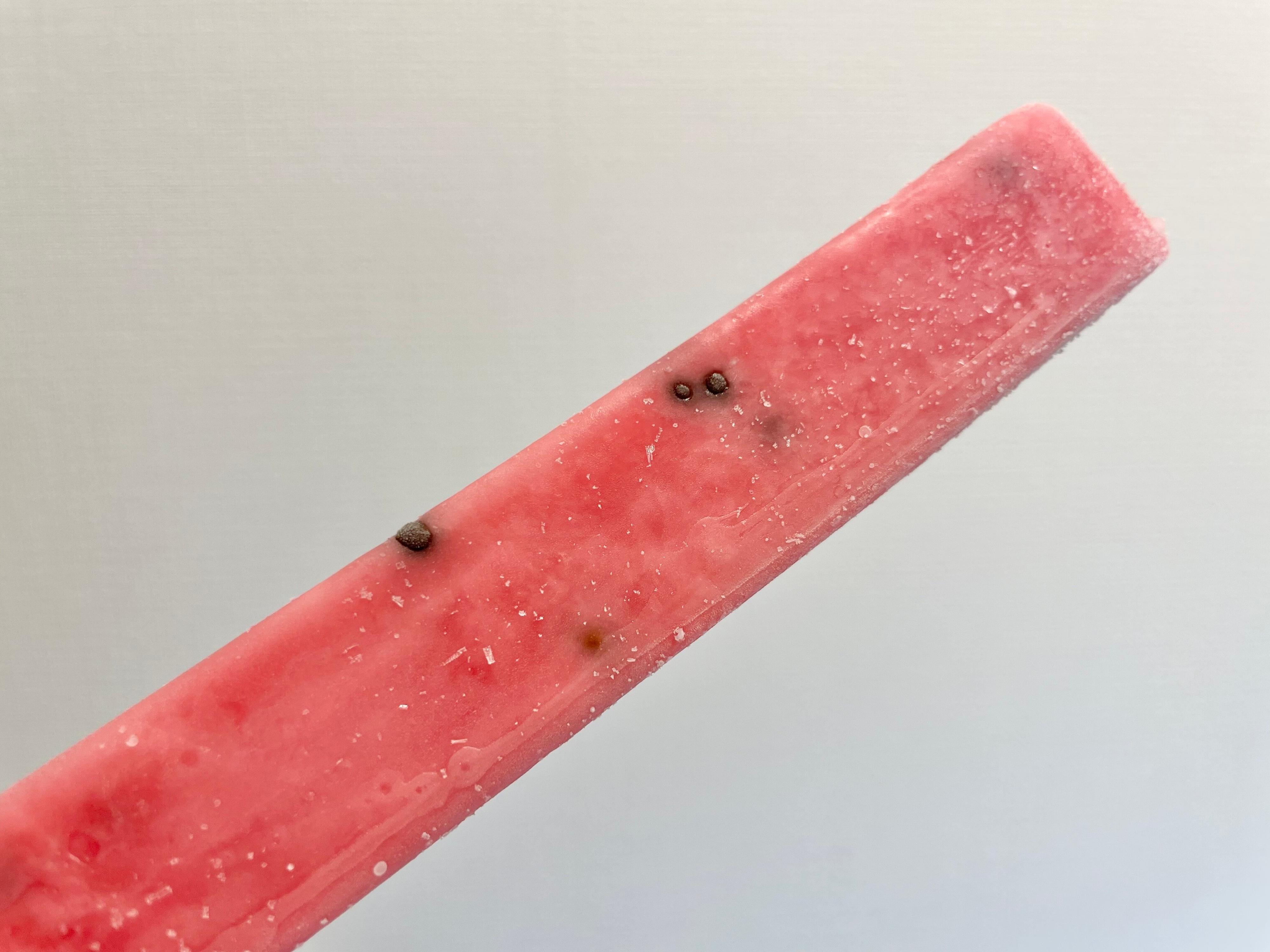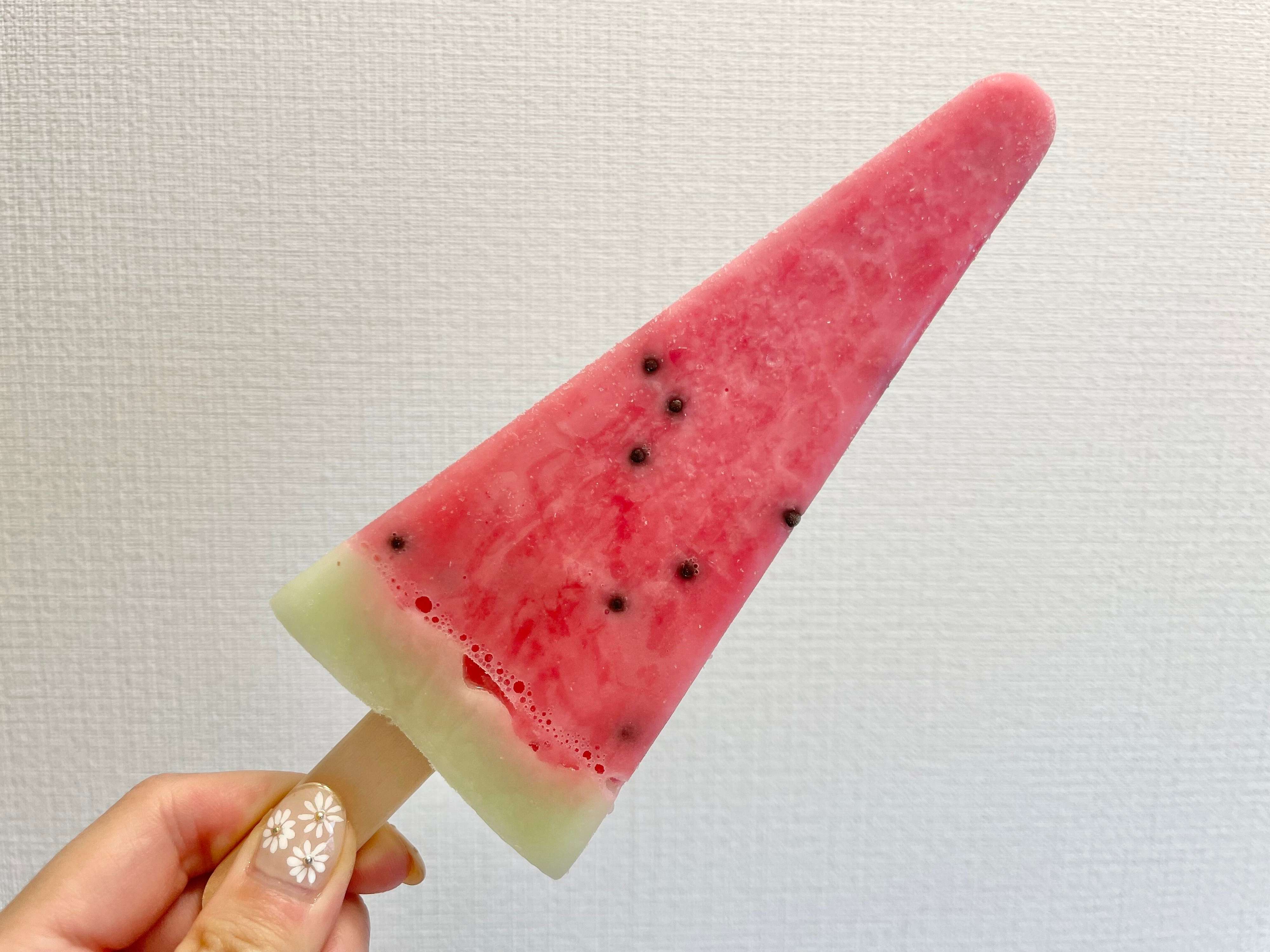 子どもの頃よく食べていたスイカバー。そのとき大きいと感じていましたが、大人になると小さく感じるんですよね。それなのに持ってみたら大きくてびっくり。