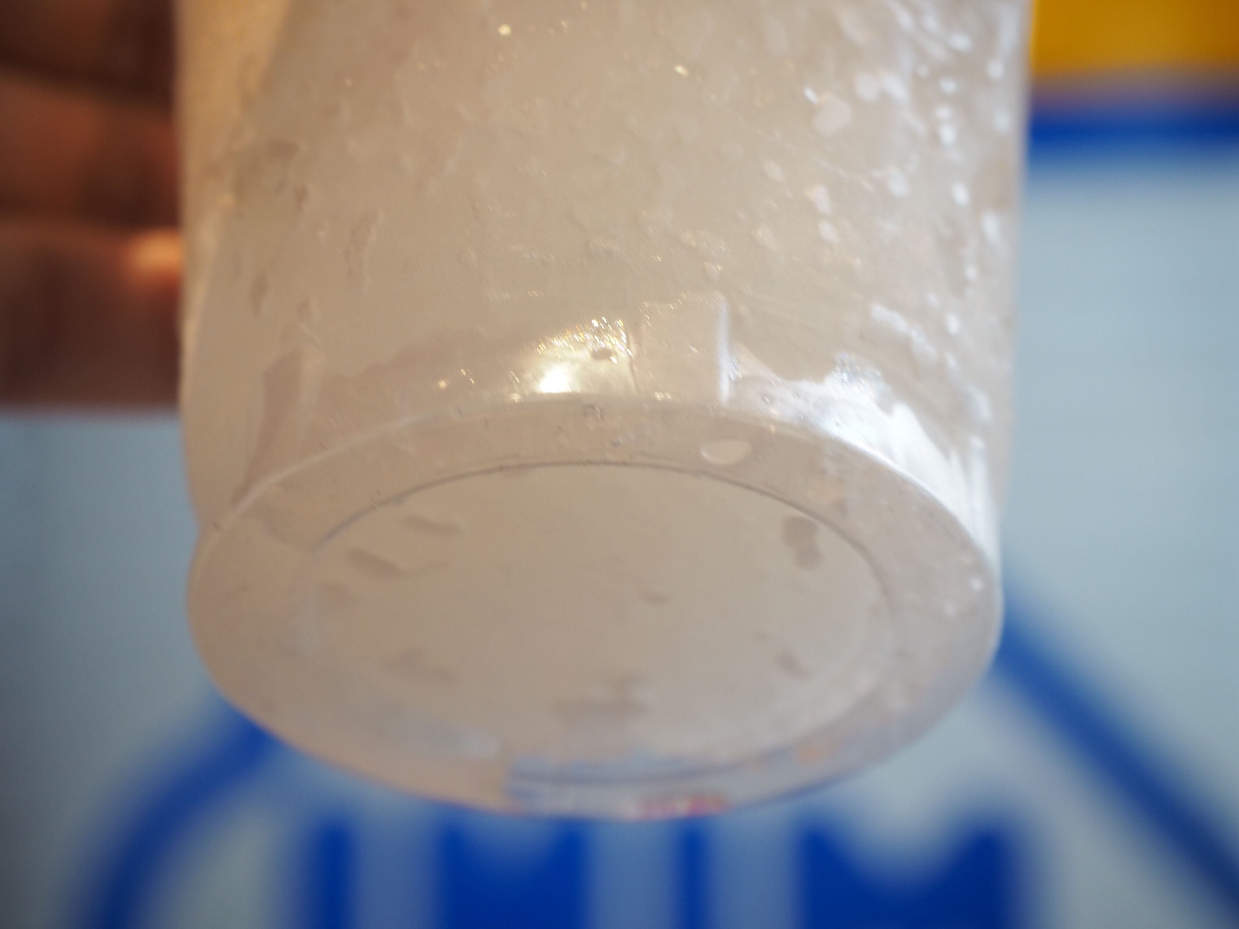 横から見ると、具材もばっちり確認できます。今回はみかん、パイン、あずき、キューブゼリーの4つを楽しめるようです。