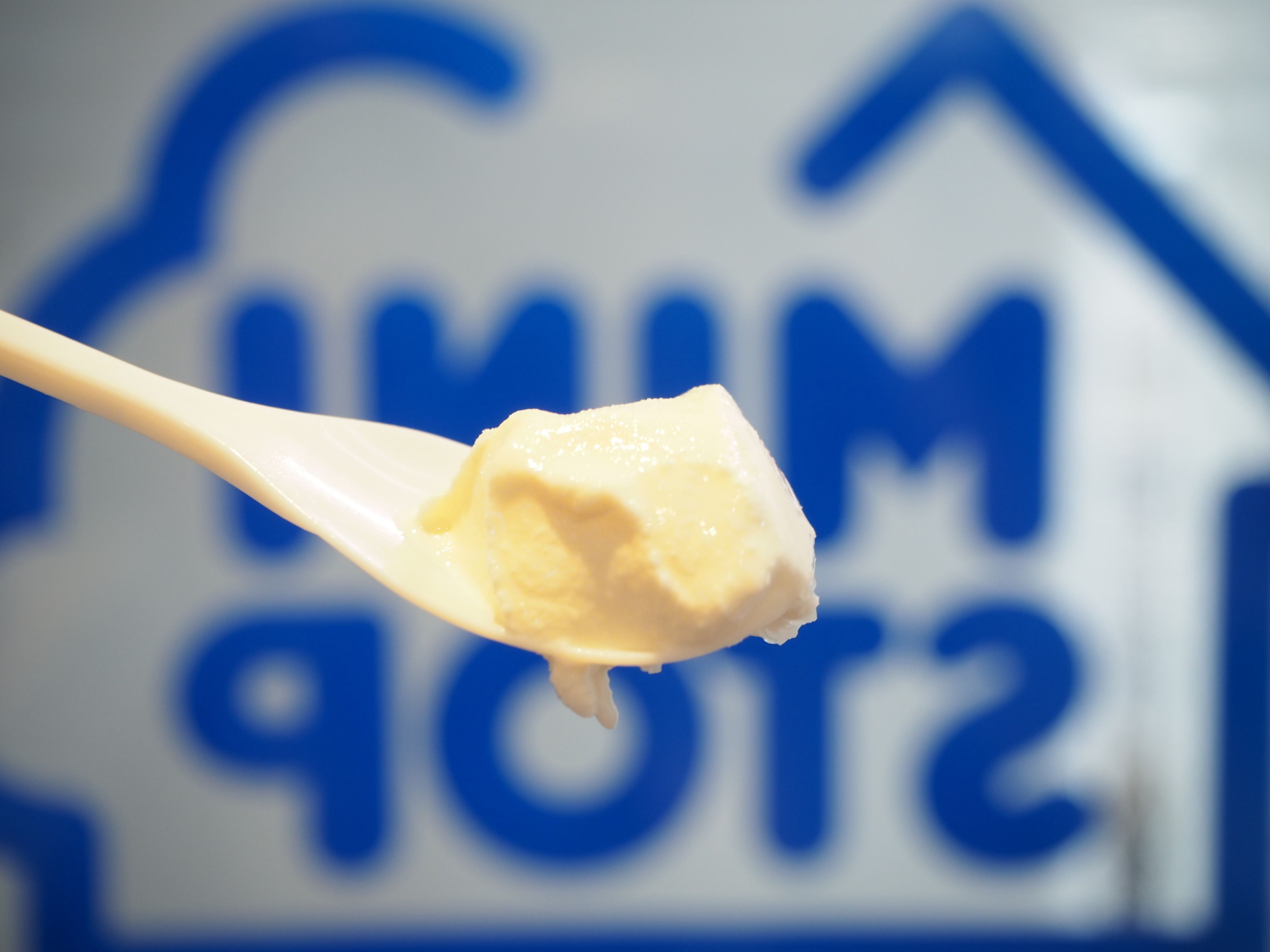 ミニストップお馴染みの「ソフトクリームバニラ」もトッピング。表面をしっかり覆うほどのボリュームなので、お得感もあります。