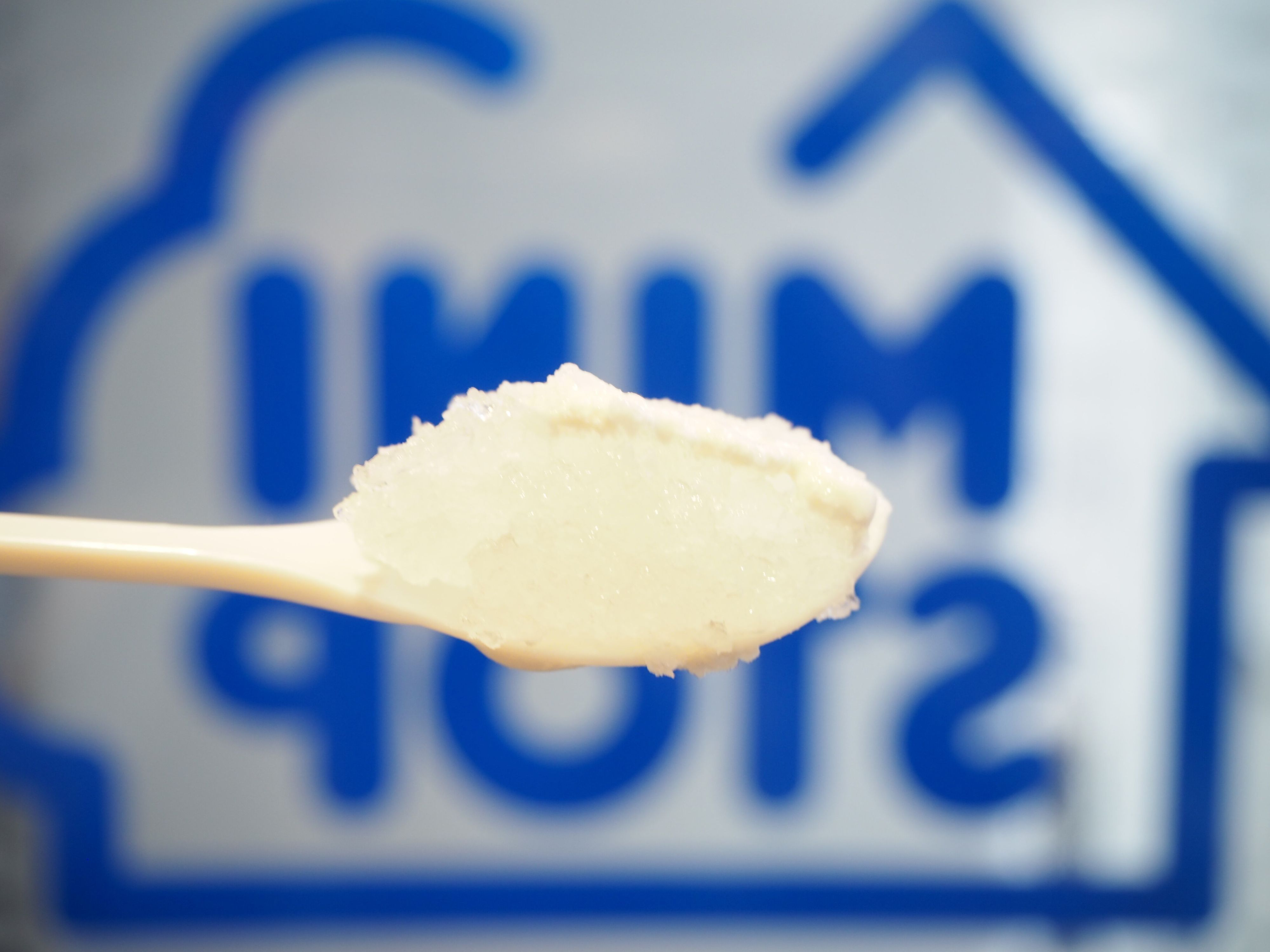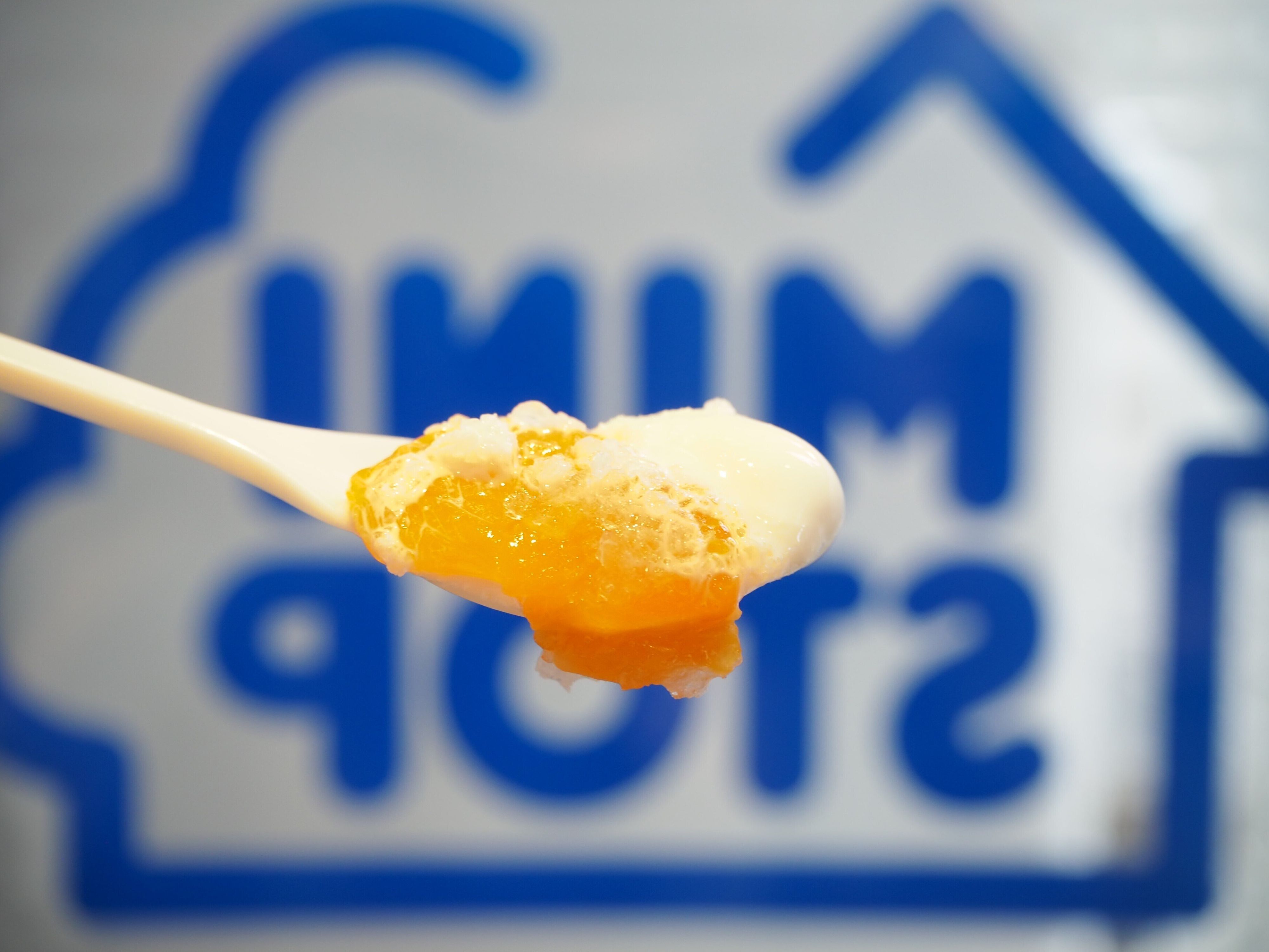 下にある練乳氷を食べたところ、こちらもやっぱりおいしい…!氷になっていても、しっかりと練乳の優しい甘みを堪能できます。