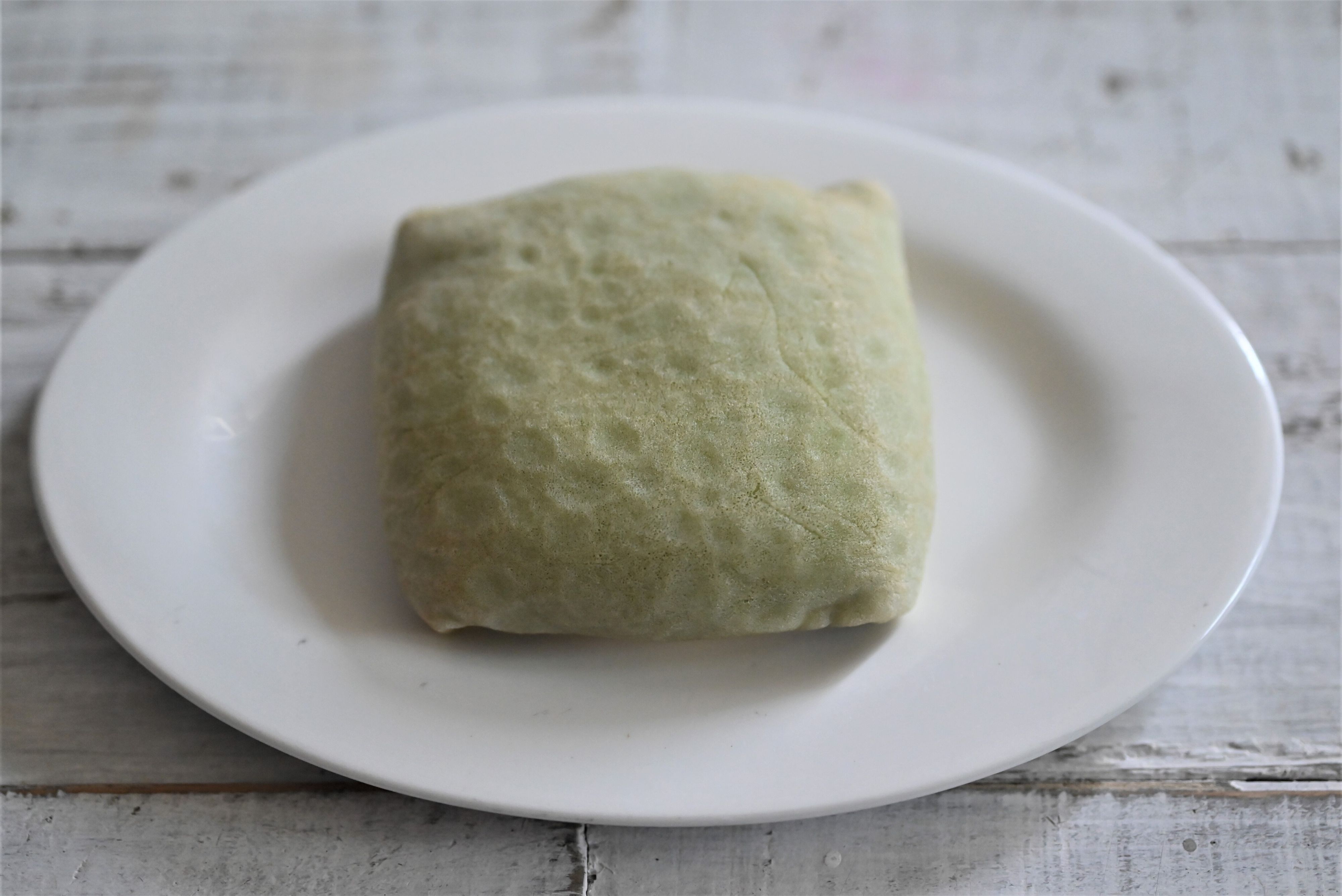 伊藤久右衛門の宇治抹茶を使用したクレープで、宇治抹茶のクリームとソース、ホイップクリームをクレープ生地が包んでいます。