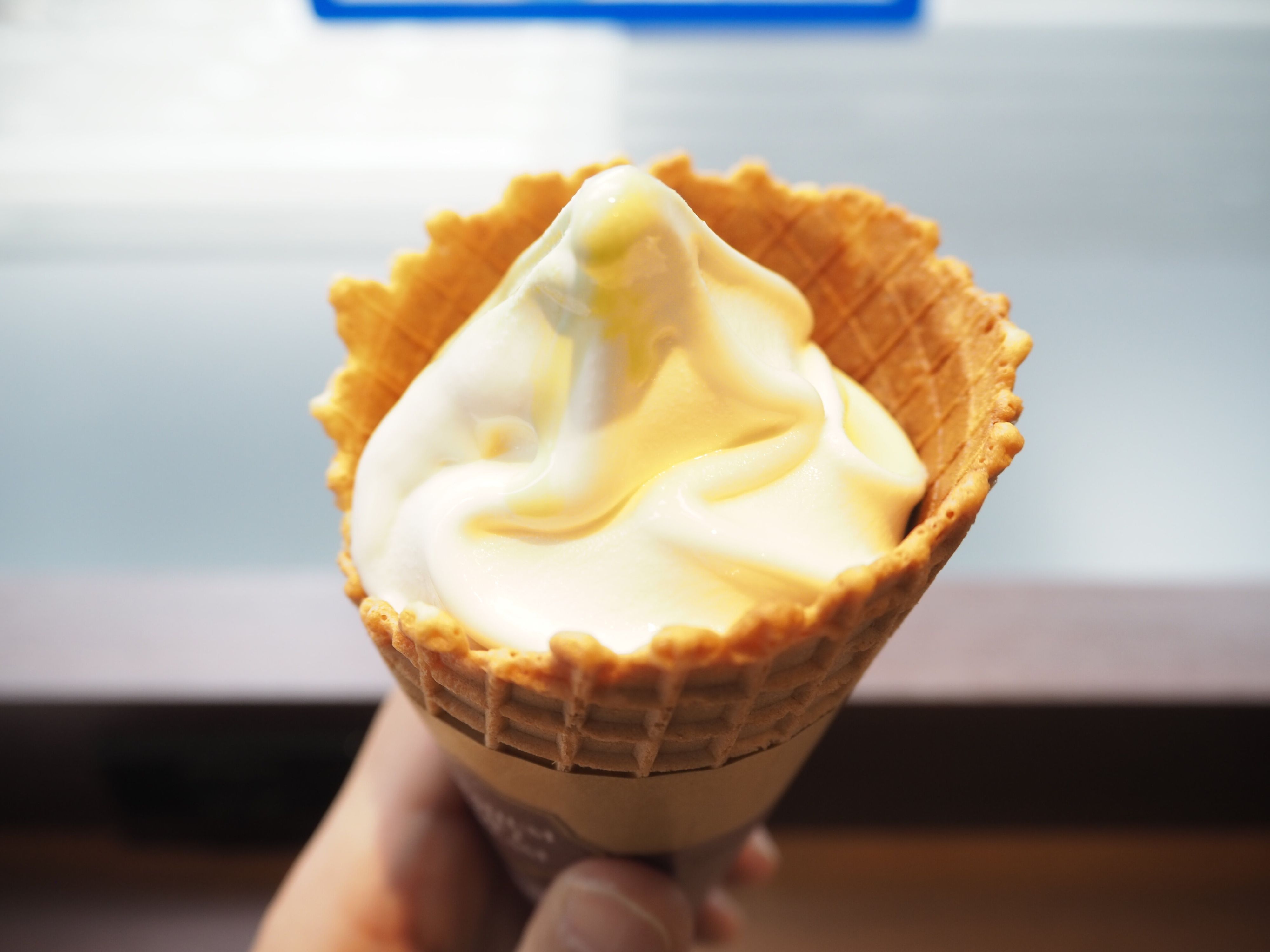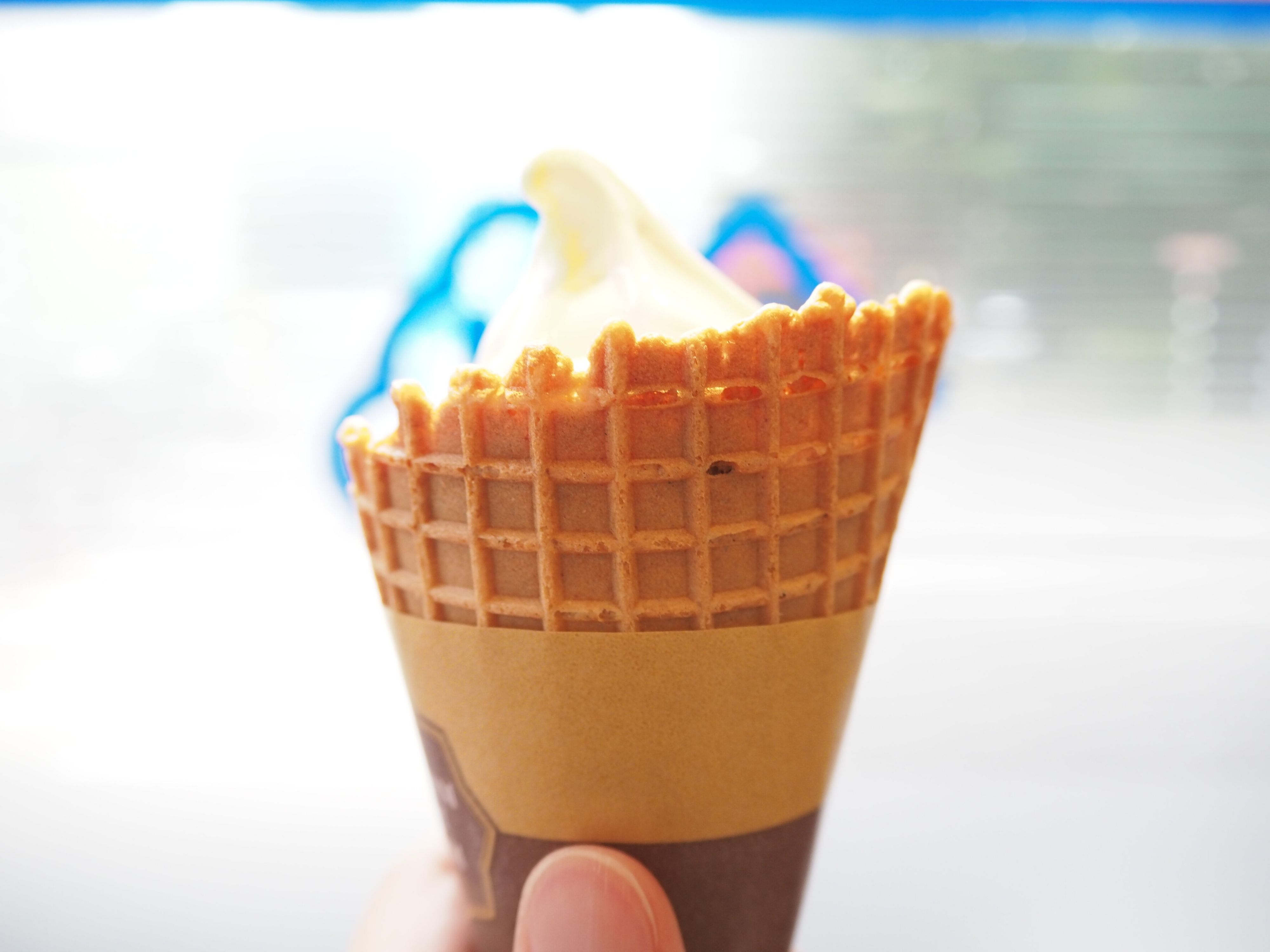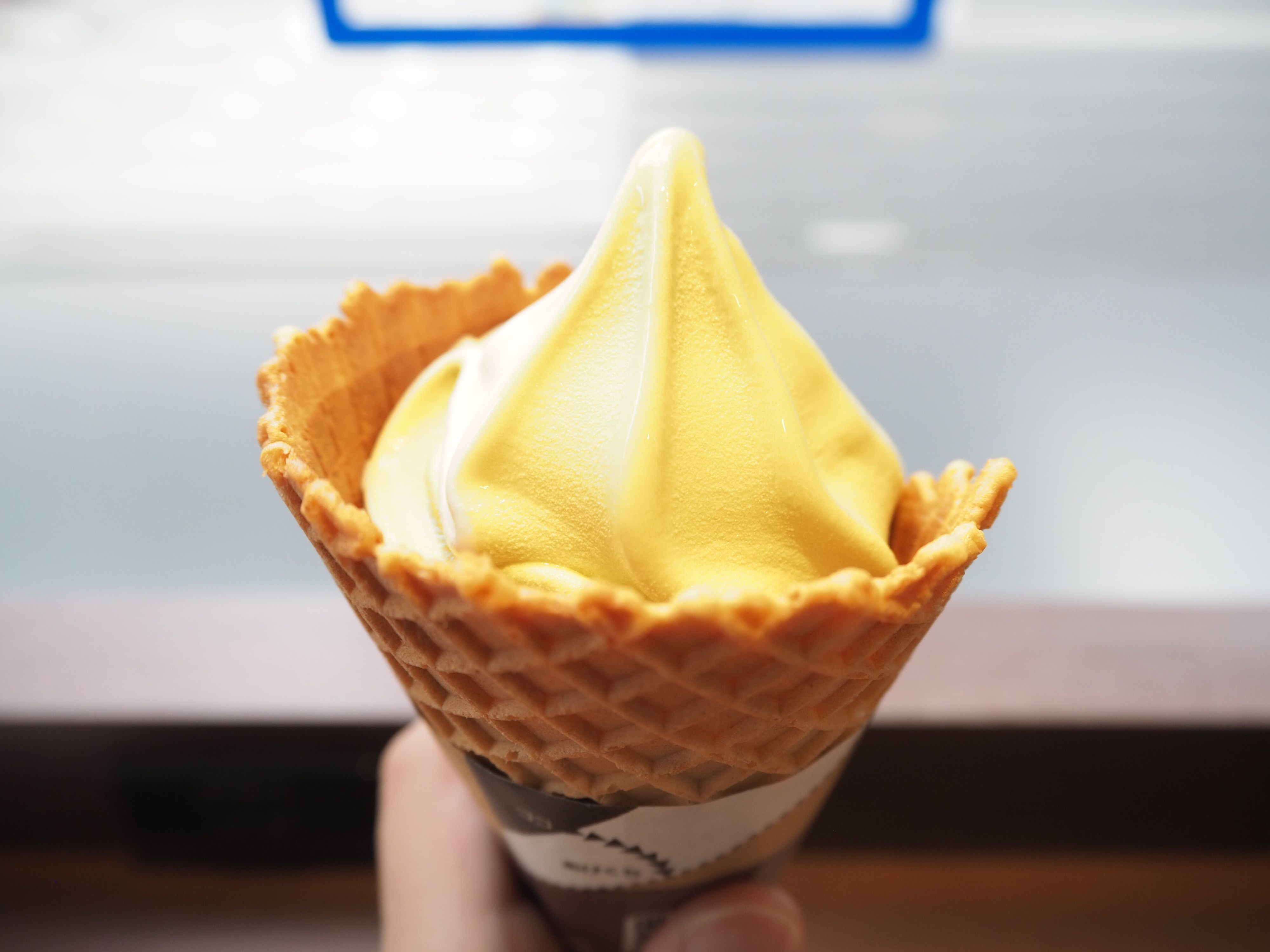 ワッフルコーンはしっかりとしたザクザク感。ソフトとの相性もよく、食べ応えも抜群です。