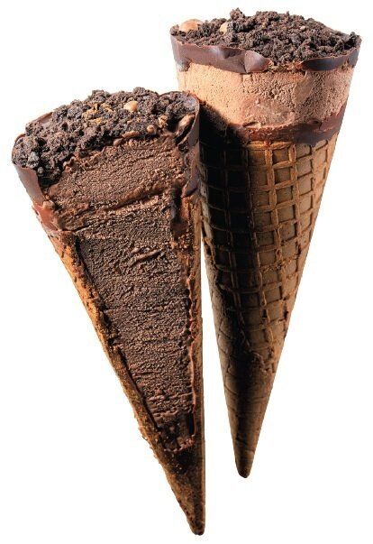 (坂)「ココアクランチとパリパリチョコがアクセントになっていて、全体的にビターな味わい。サクサクのココアワッフルコーンの内側にもチョココーティング。1本で大満足します」。