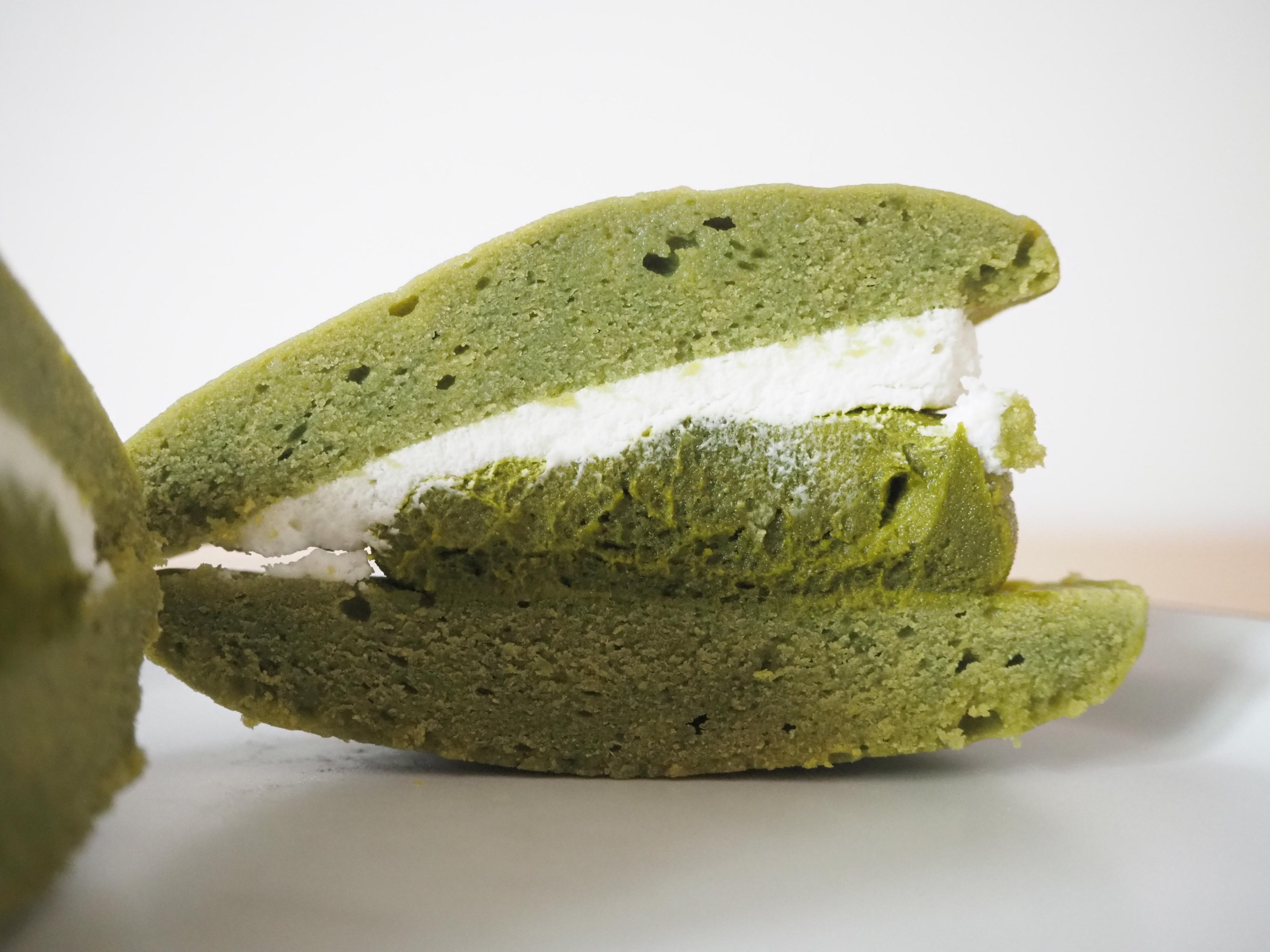 ホイップクリームはやや硬めで、甘さは控えめ。甘い生地と渋めの宇治抹茶入りクリームにコクと濃厚さを加え、リッチな味に仕上げています。それでいてすっきりとした後味があるのも魅力の1つです。