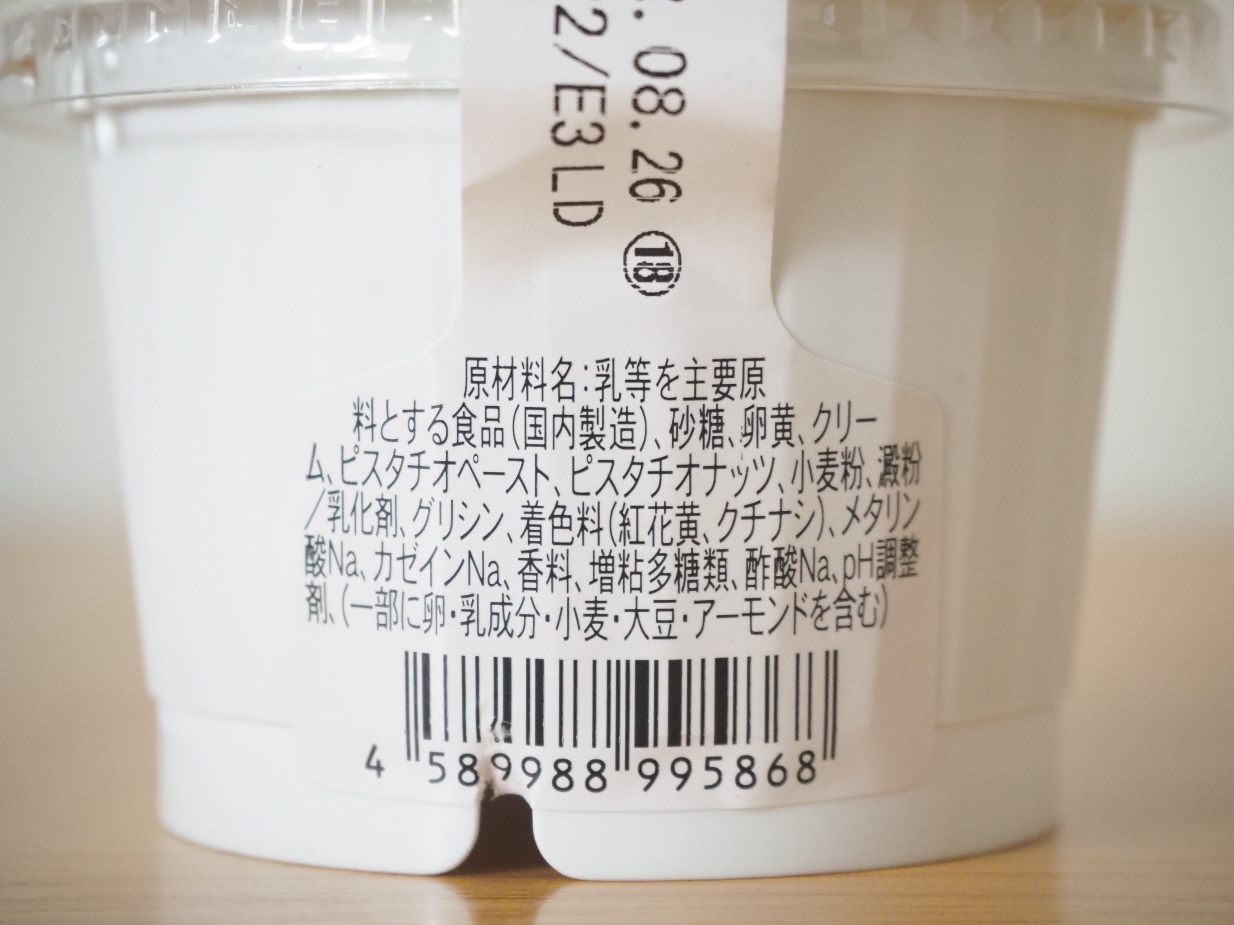 原材料を見てみると、確かにピスタチオペーストとピスタチオナッツが入っています。プリンといえば卵、牛乳、砂糖がメインの食材ですが、こちらの商品では牛乳ではなくクリームを使用。とろける食感を期待できそうですね!