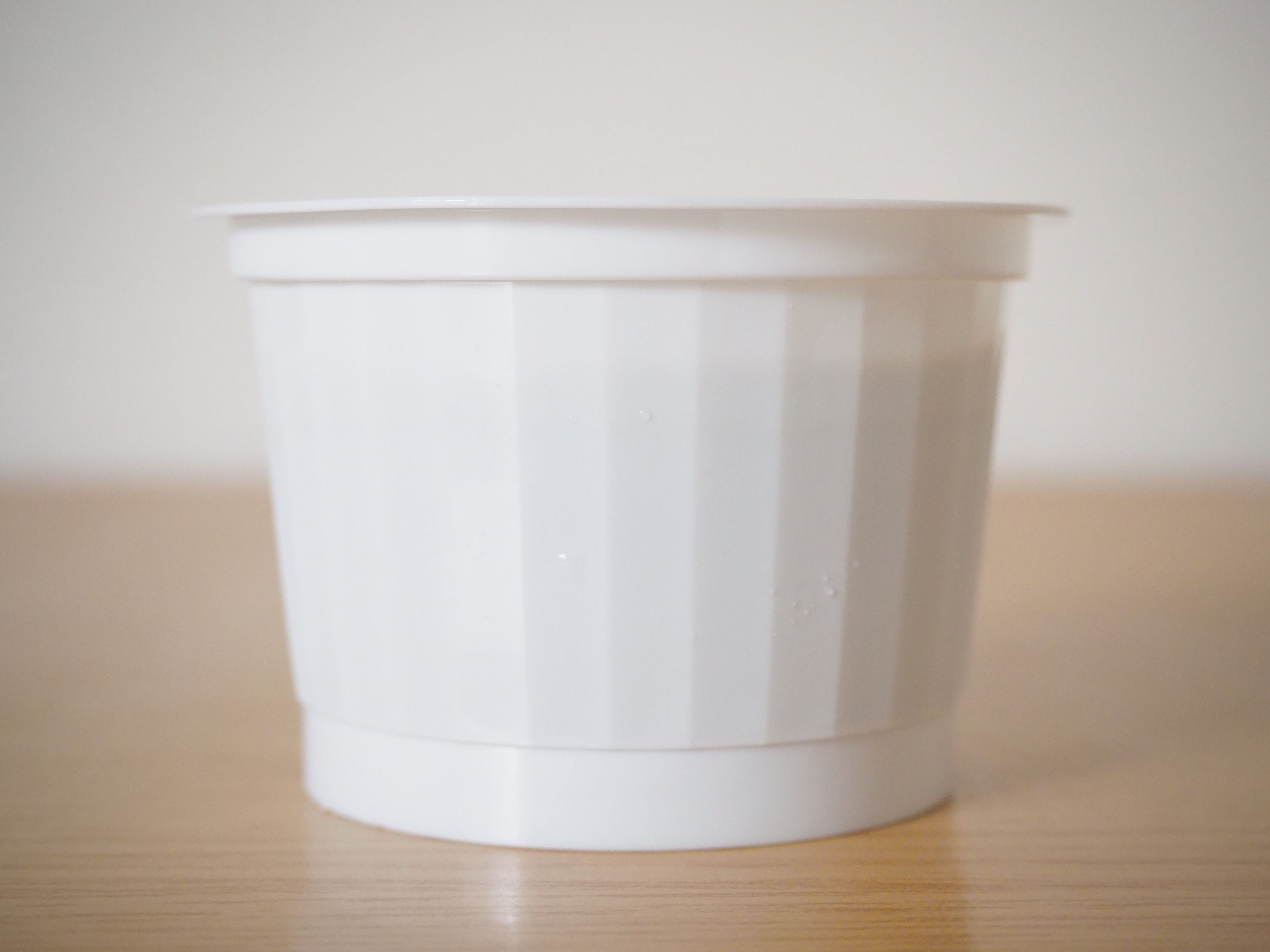 白いプラスチックの容器に入っていて、縦に入った筋がおしゃれな雰囲気を演出しています。