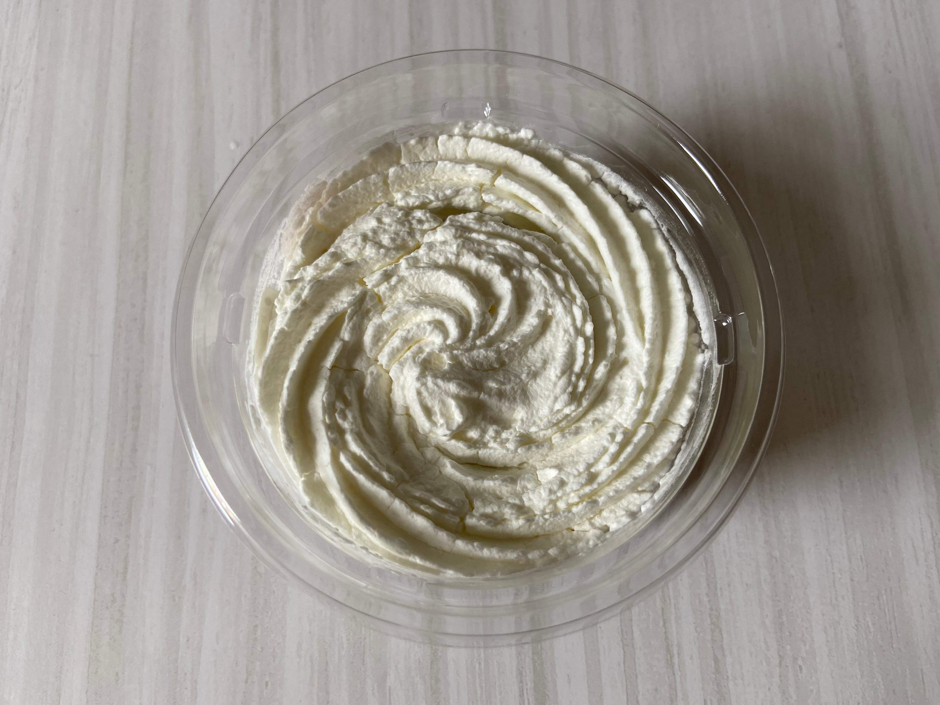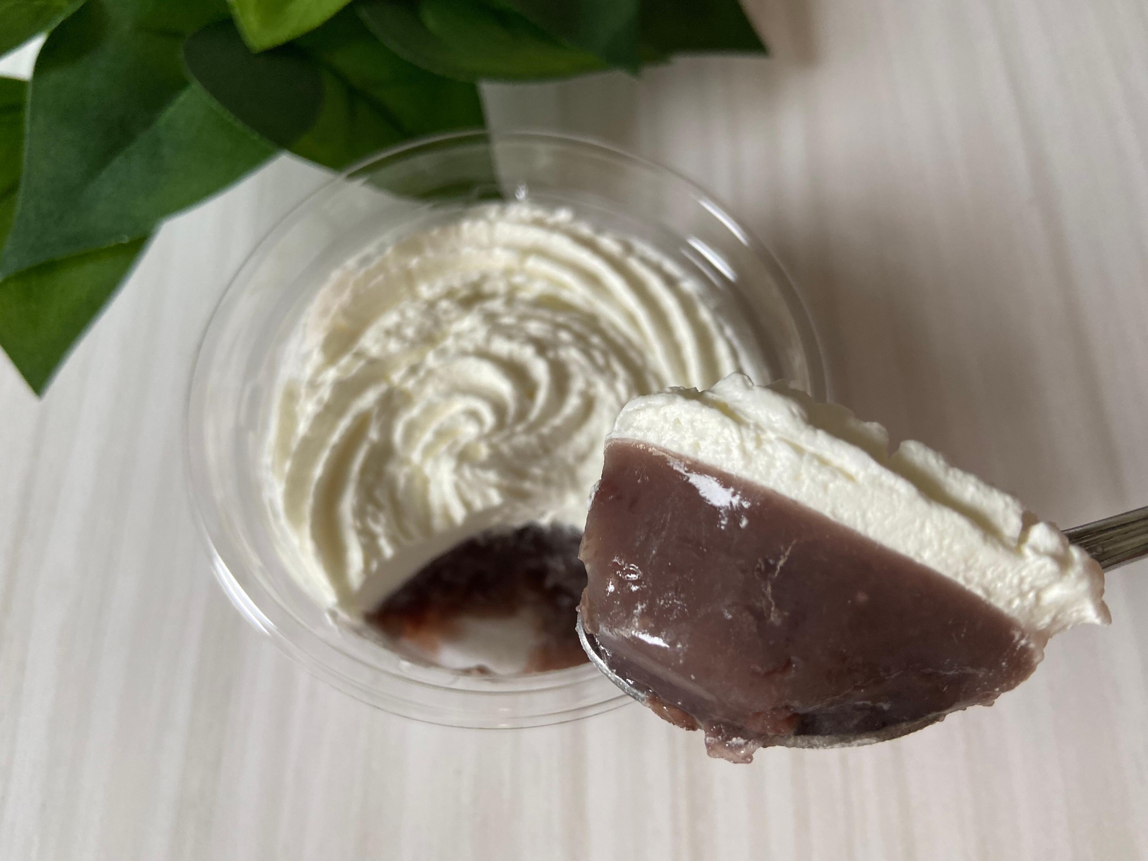 北海道十勝産小豆を使用したぜんざいにミルクホイップをたっぷりトッピングした、シンプルな見た目のカップデザートです。