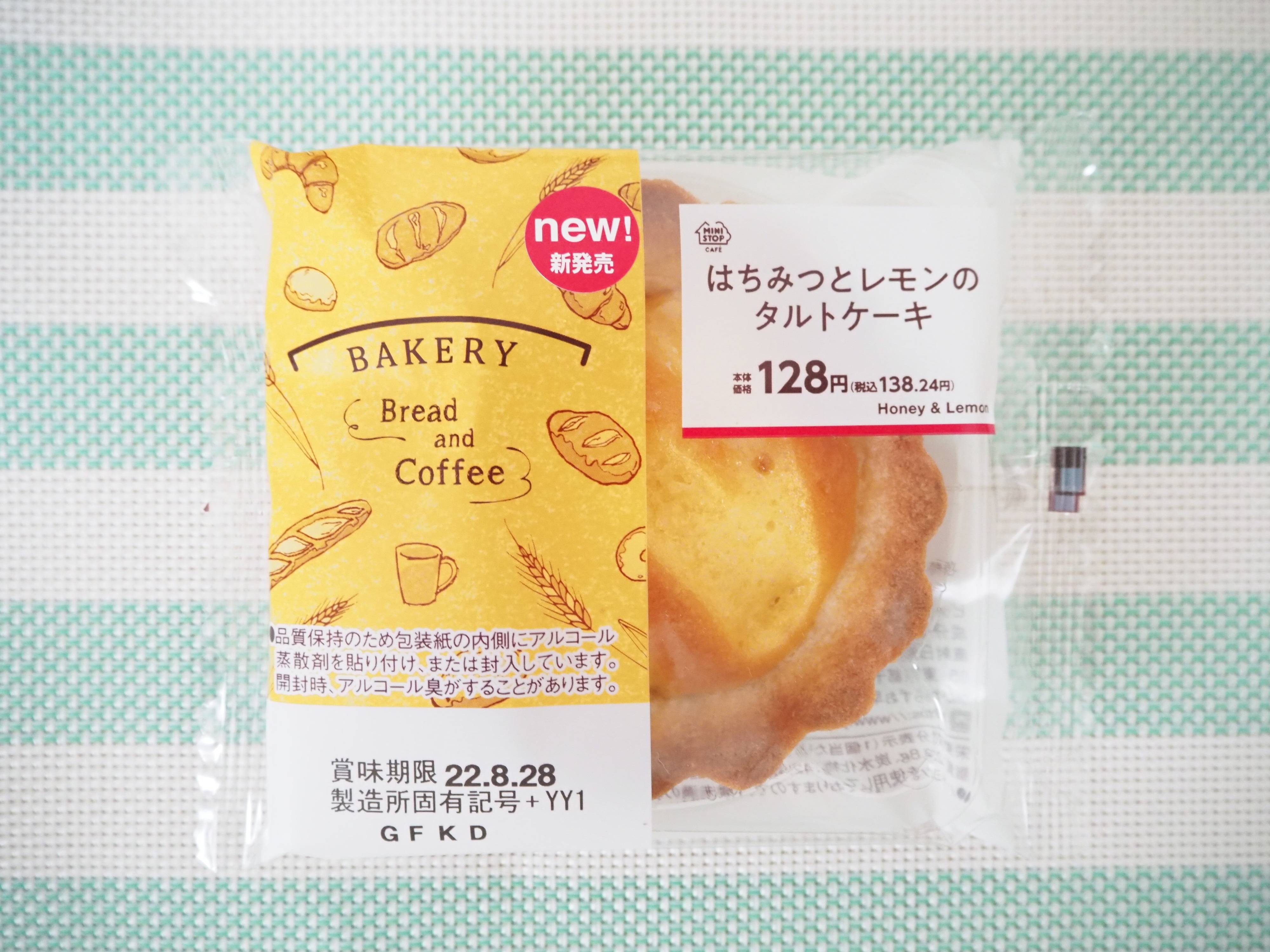 こちらが「はちみつとレモンのタルトケーキ」で、価格は138円。常温のパンコーナーで見つけましたが、名称が「洋菓子」とあるので、スイーツと思ってもよさそうです。