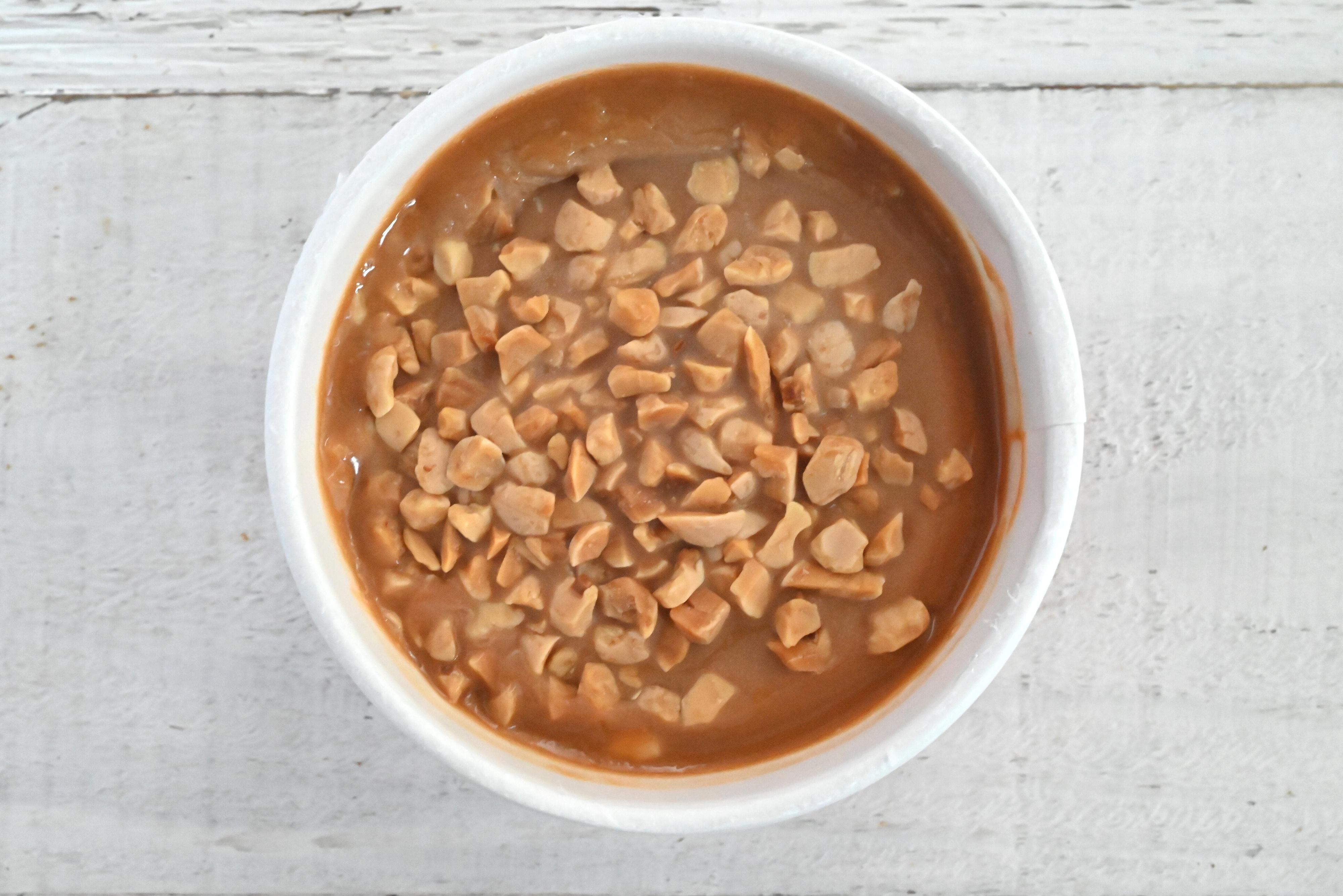 キャラメルコーティングの下にはキャラメルフレーバのアイスが砕かれたココアクッキーとともに入っています。