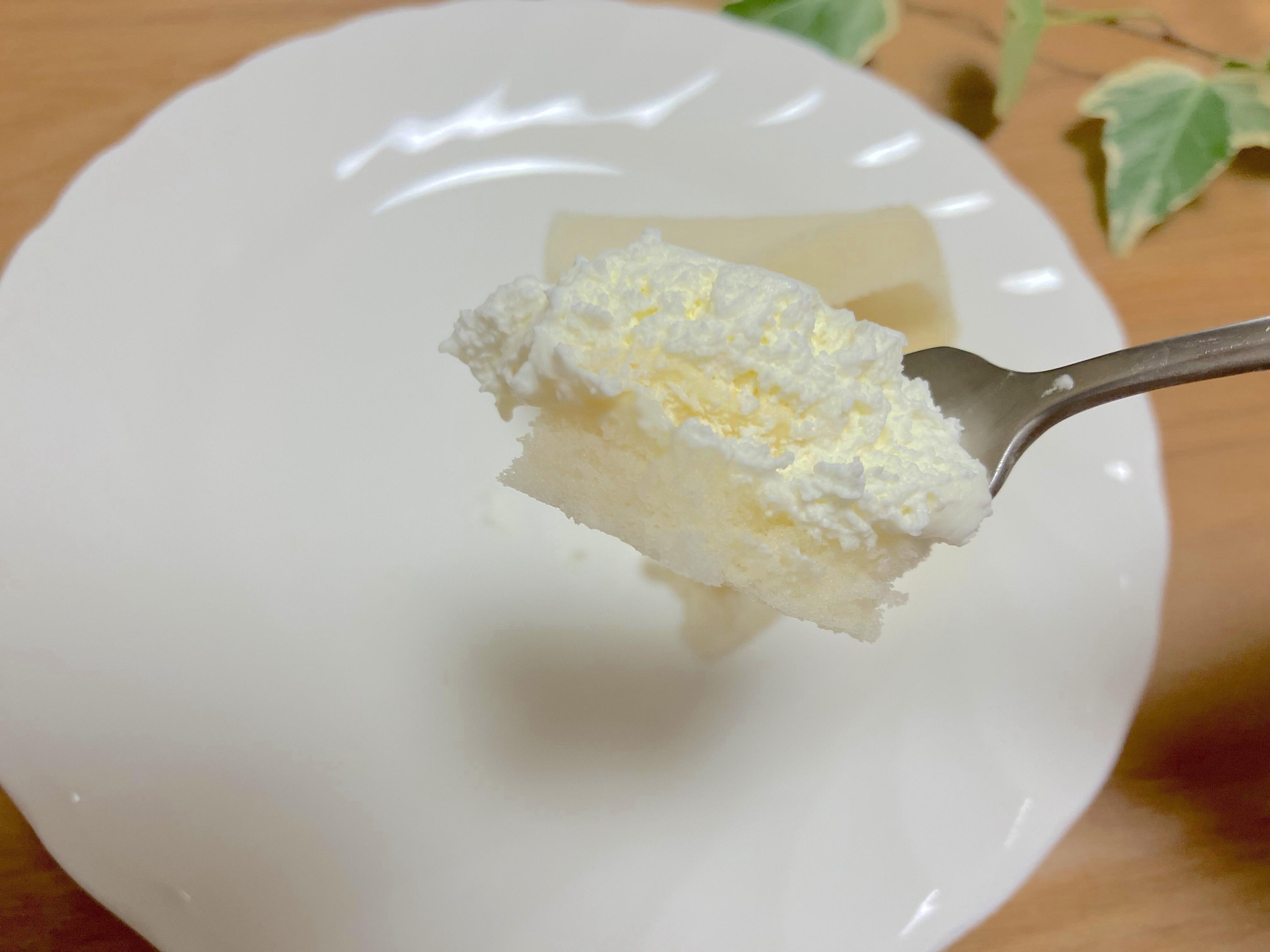 スフレケーキの生地は、食べるとふわっとしていて、控えめな味となっているのでクリームの味を引き立てています。