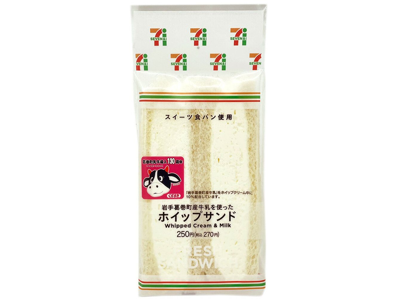 出展:セブン-イレブン 岩手葛巻町産牛乳を使ったホイップだけサンド