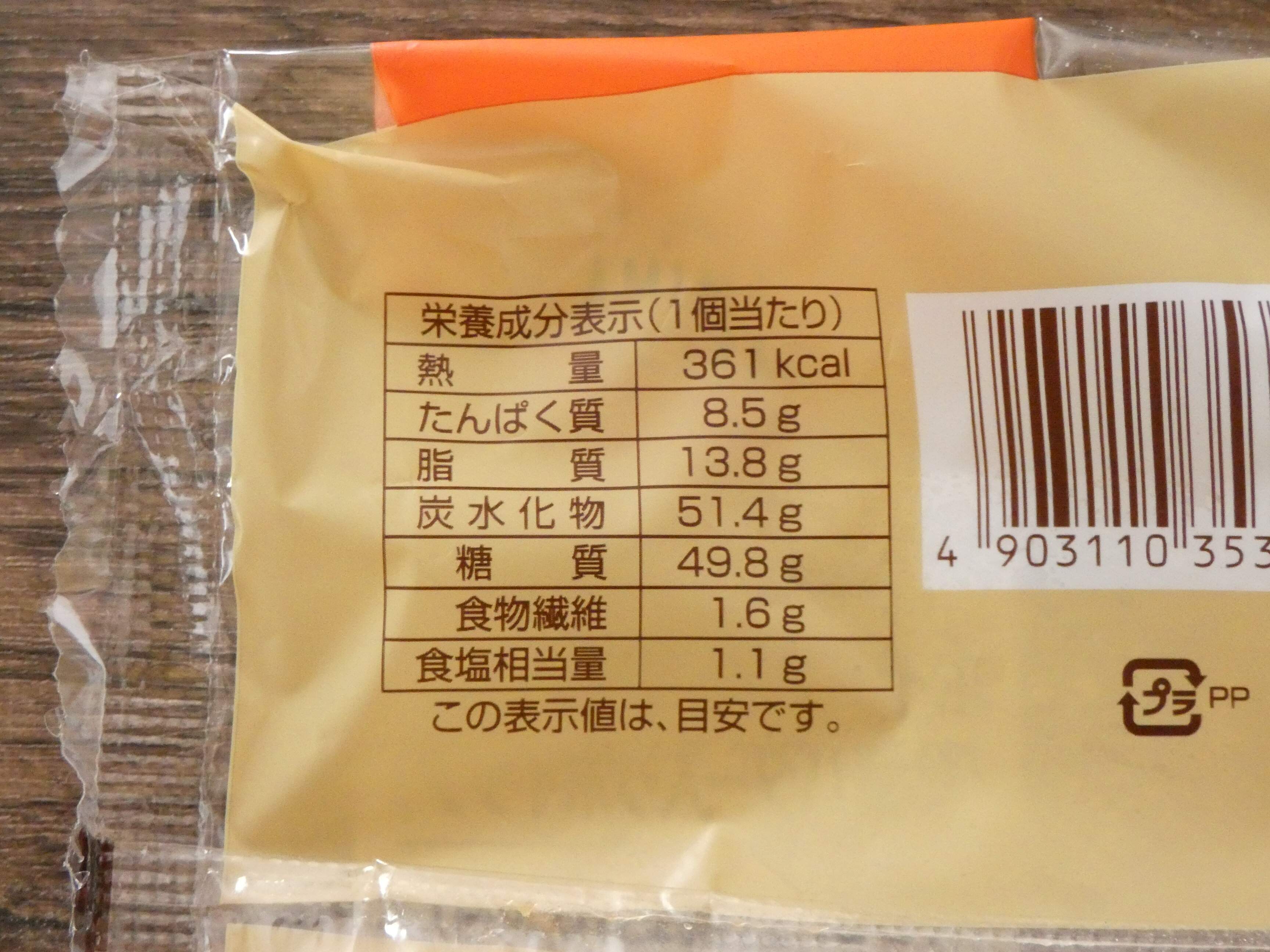 栄養成分表示を見ると、1個のエネルギーは361kcal。