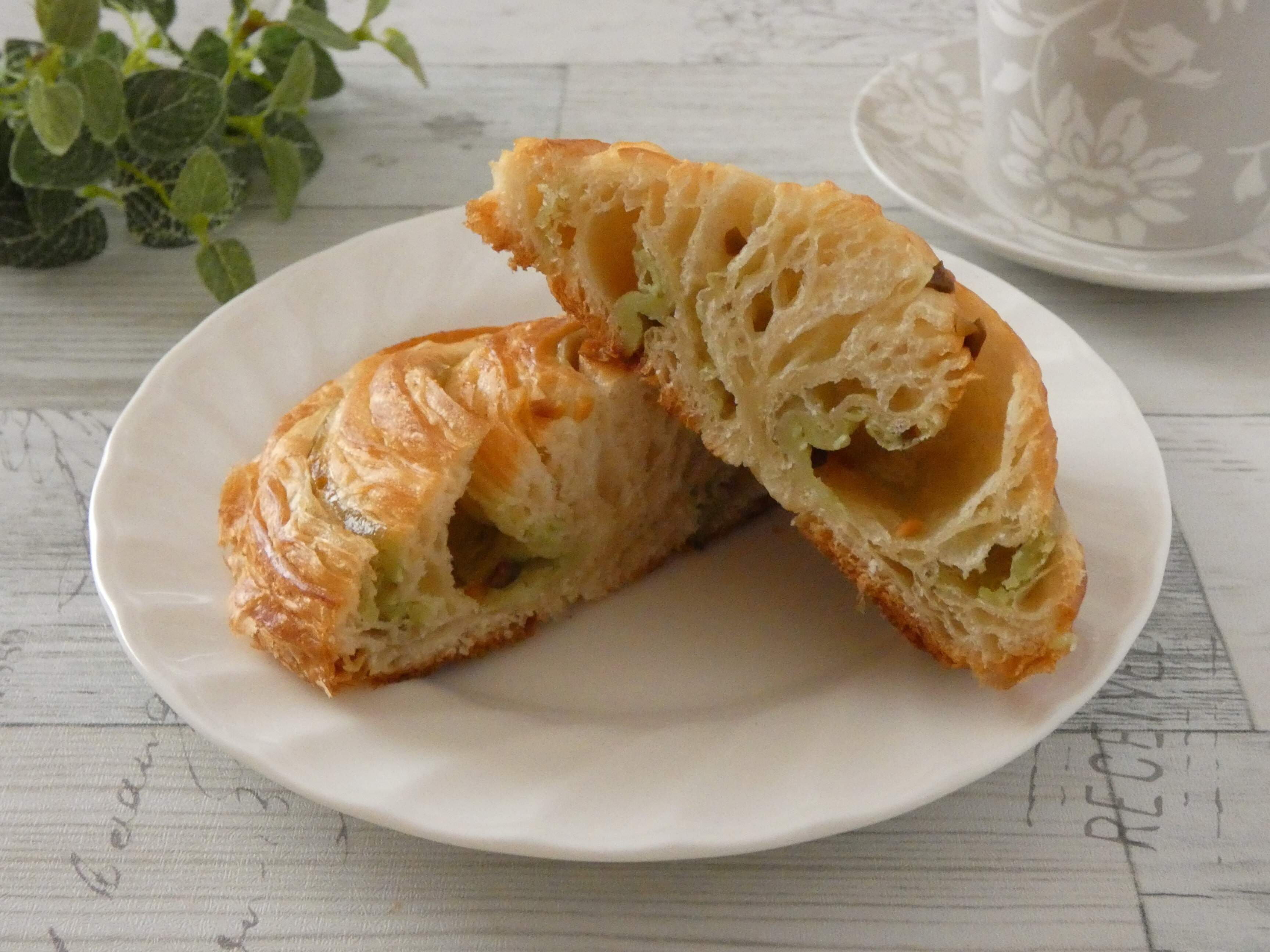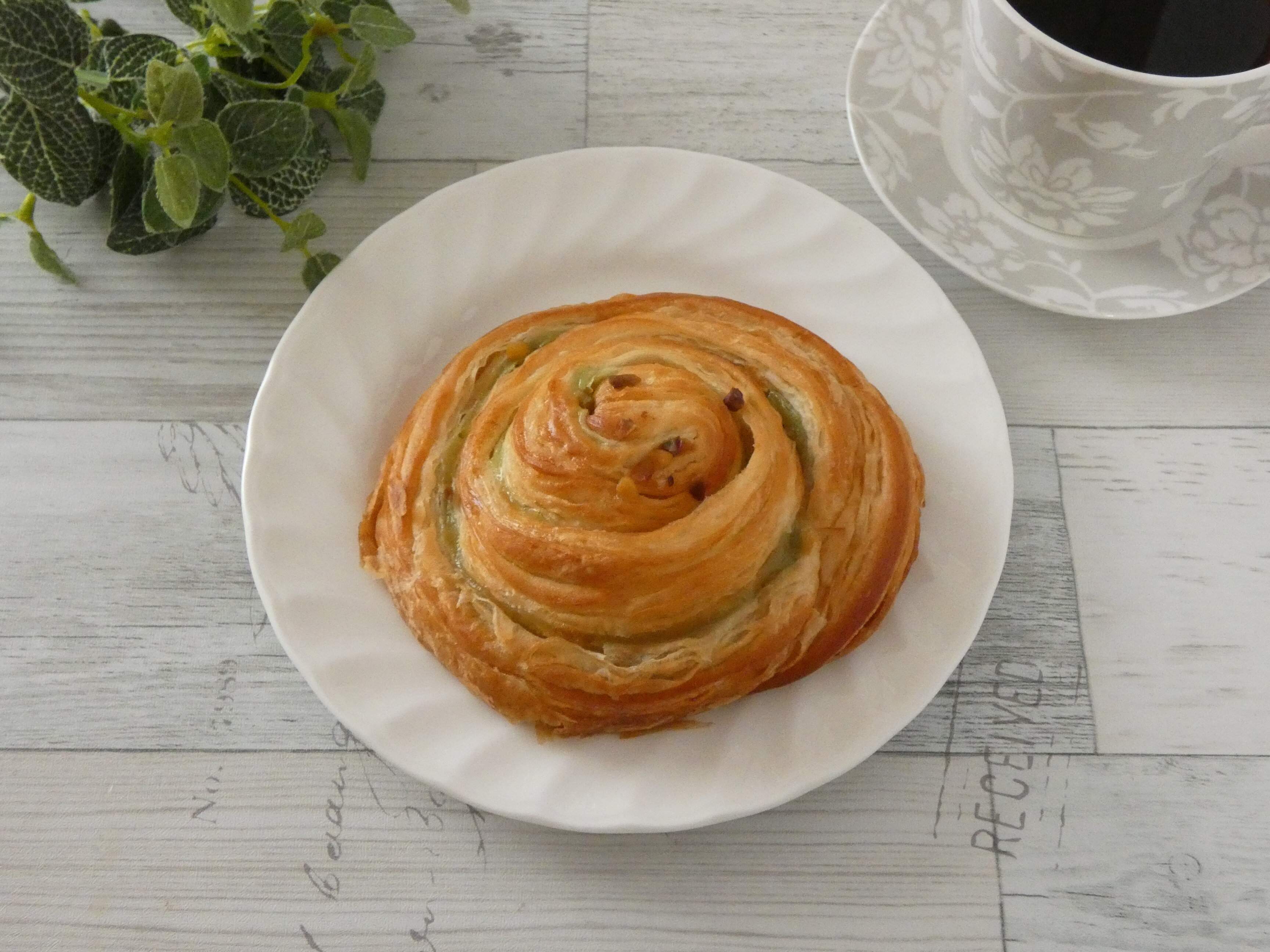 生地はもっちりして、発酵バターの香りがいっぱいに広がります。ピスタチオクリームは香ばしくて硬めのぷるんとした食感。たっぷり巻き込んであるので、ピスタチオ風味をしっかり感じます。濃厚すぎず軽い食感なのでペロッと食べられます。