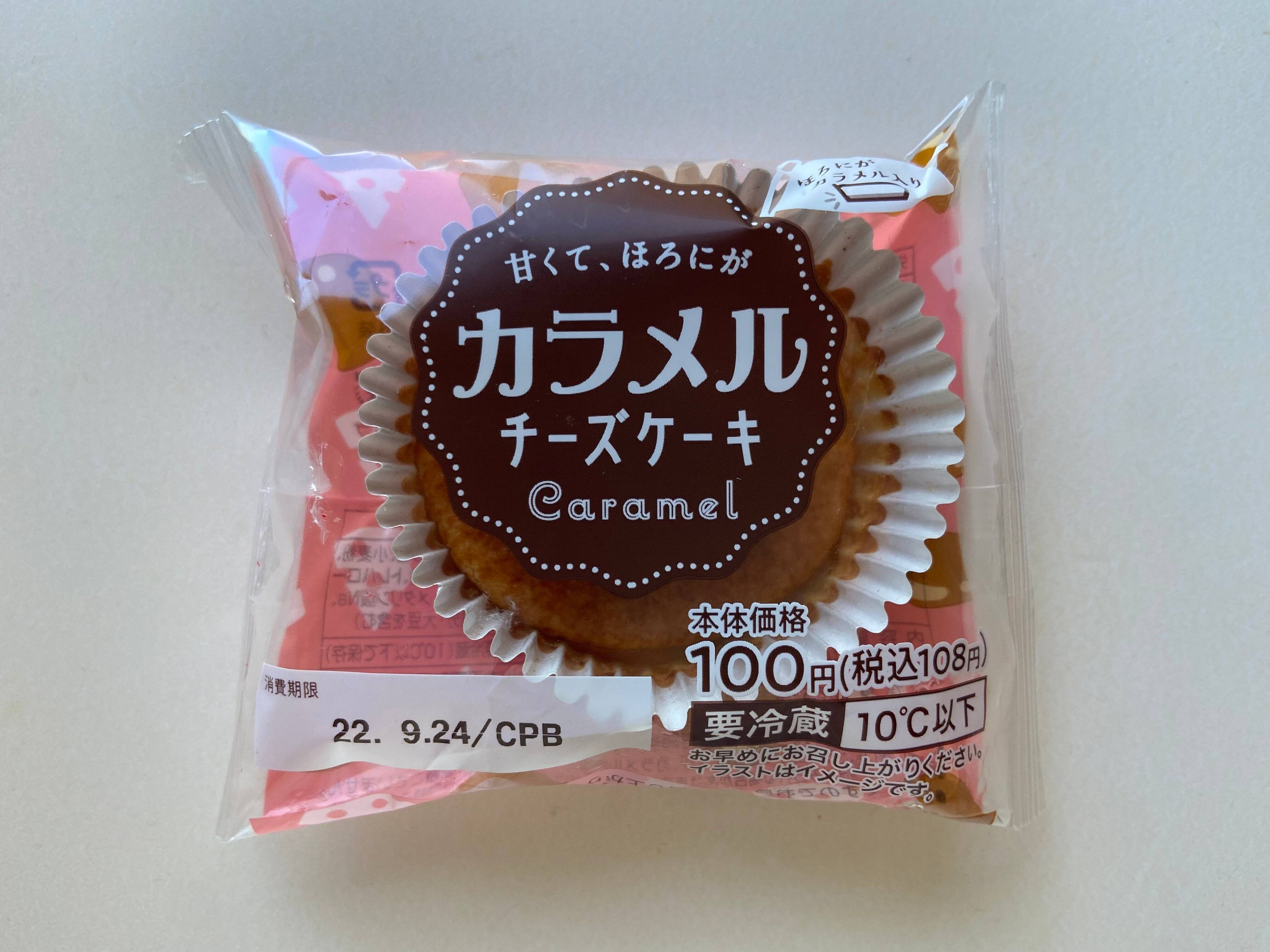 出たばかりの新商品!9/21発売のカラメルチーズケーキ(購入時:108円)は濃厚なベイクドチーズケーキにほろ苦いカラメルを合わせた秋のチーズケーキ、とのこと。