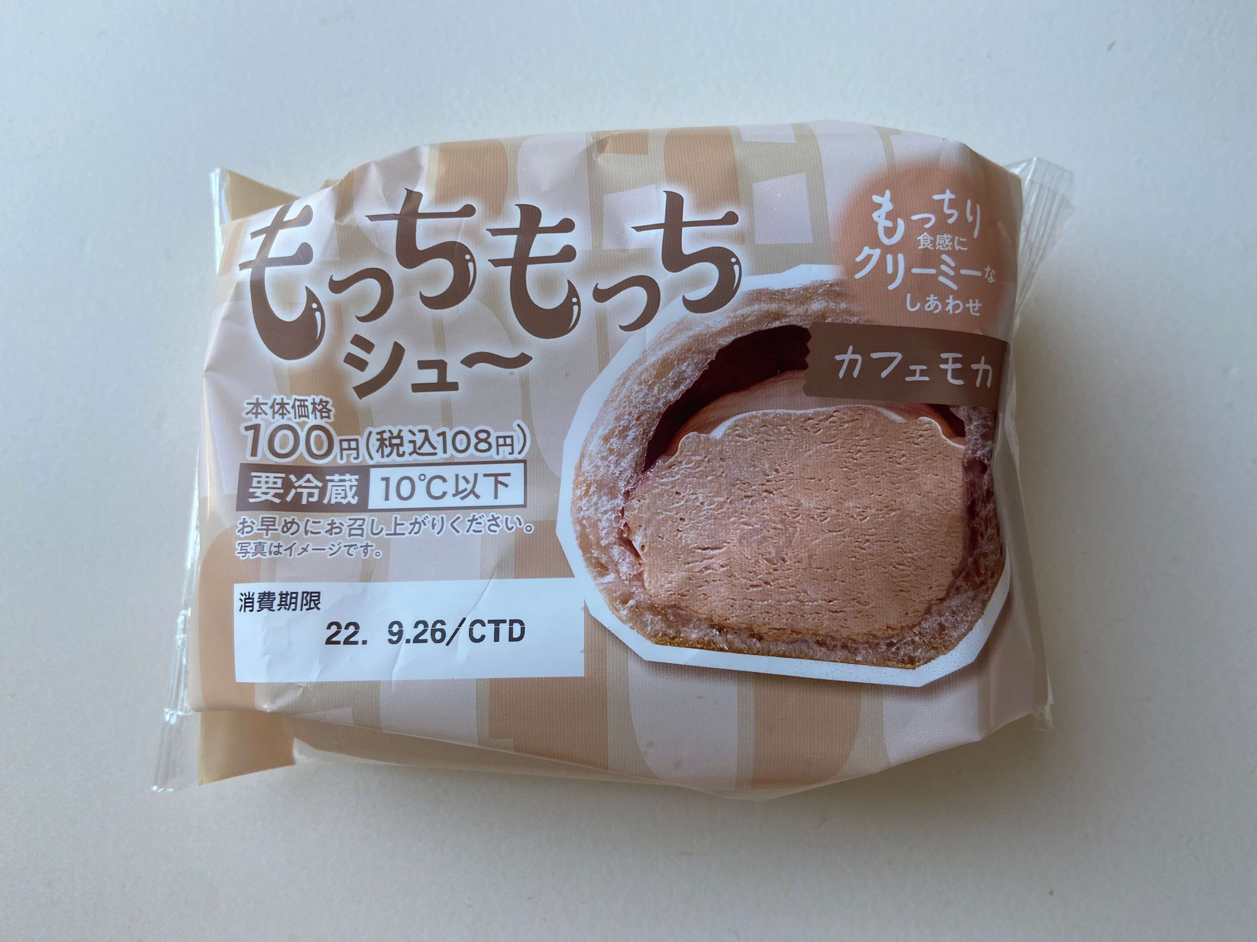 2022年9月に発売されたばかりの新商品「もっちもっちシュー」(購入時:108円)。たっぷりのクリームともちもち食感の皮が人気のシュークリームシリーズに新作が登場と話題!