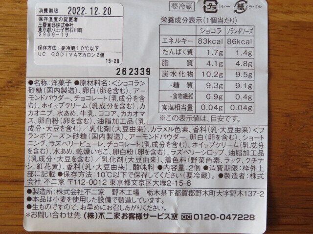 値段は可愛くないけれど、熱量はひかえめ。1個あたり、ショコラは83kcal、フランボワーズは86kcalです。