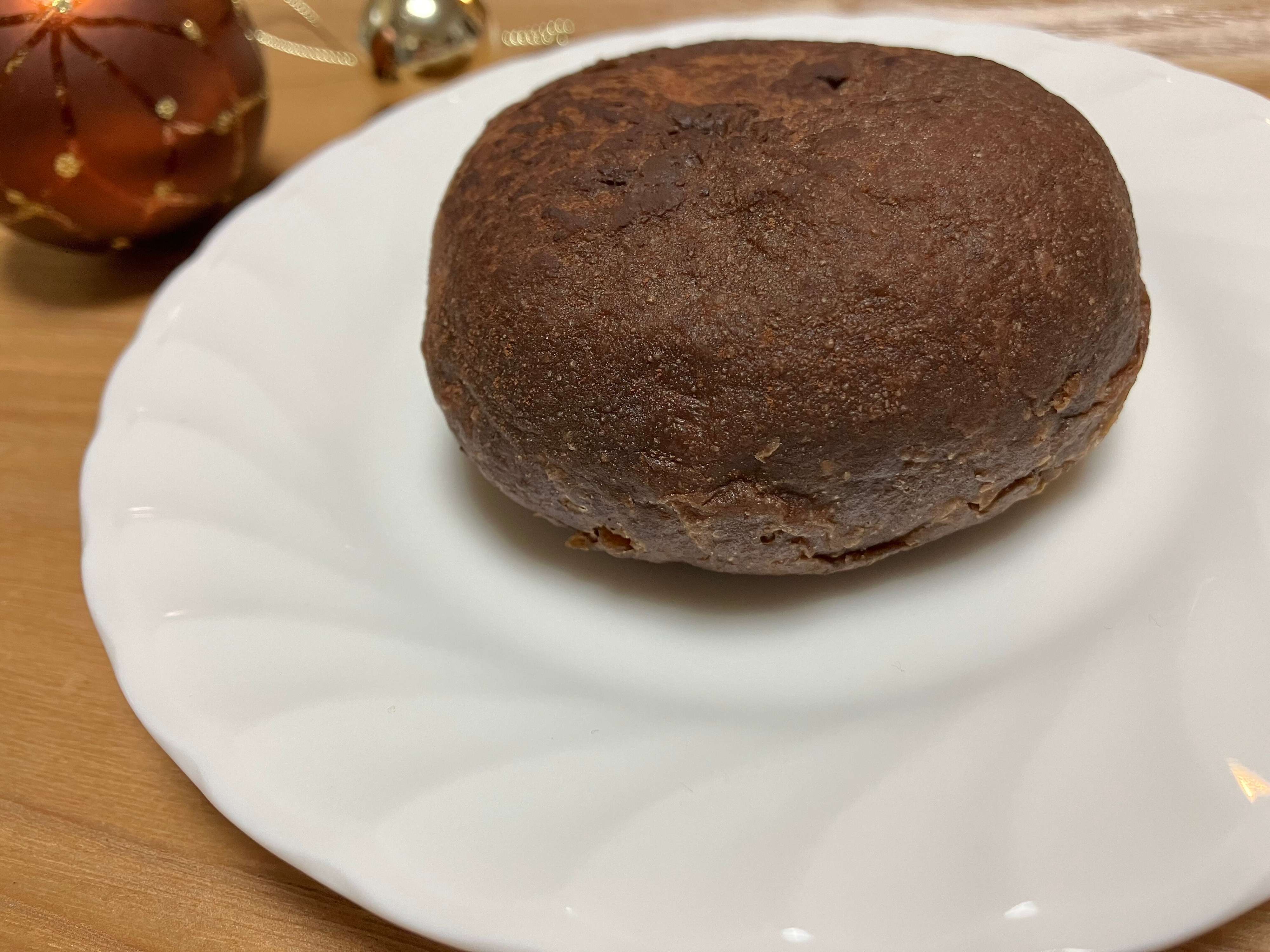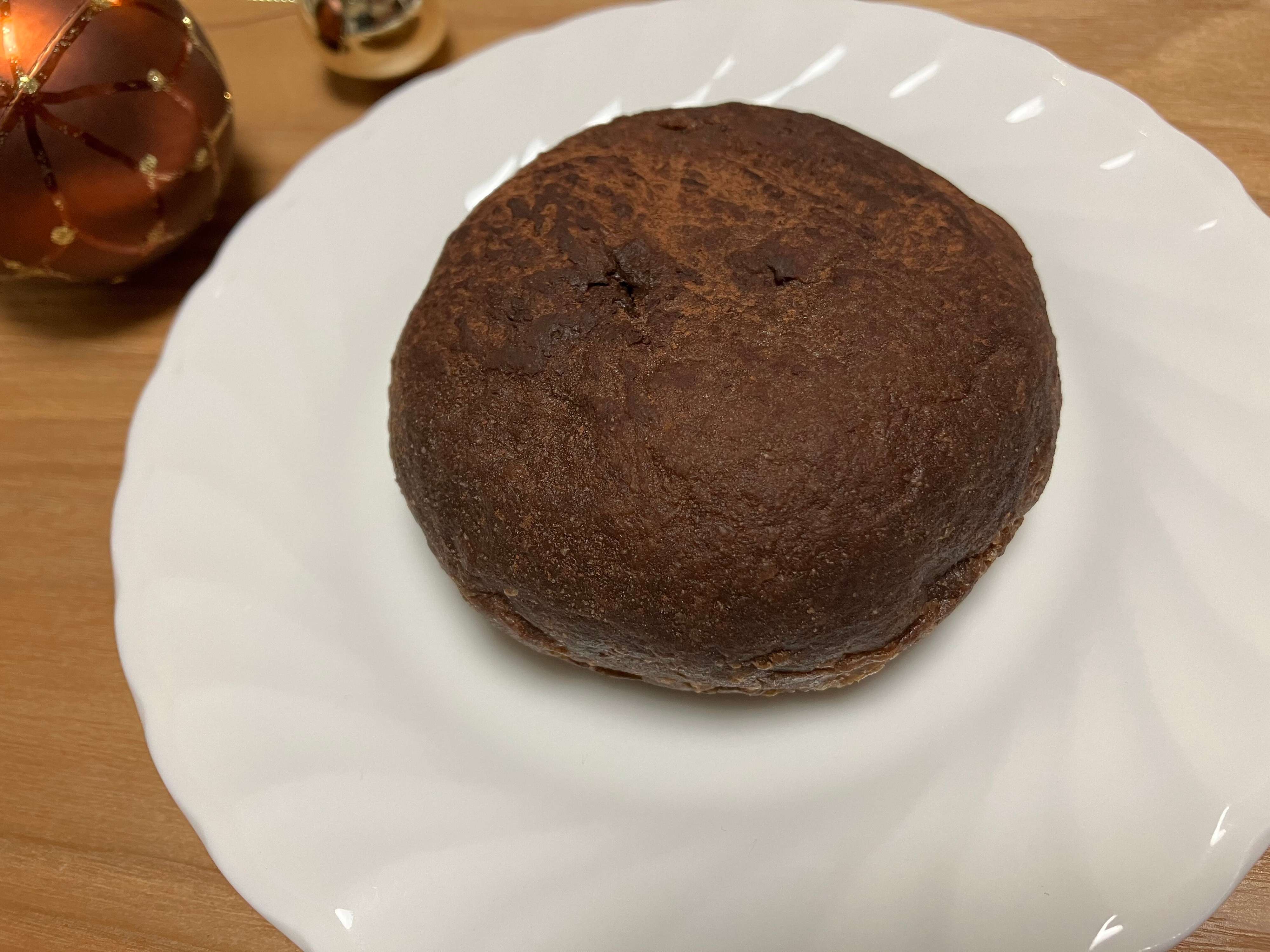 もっとチョコパウダー的なものが沢山かかっているかと思っていたのですが、横からみるとそこまでかかっていません。厚みはあるので食べ応えはありそうです。