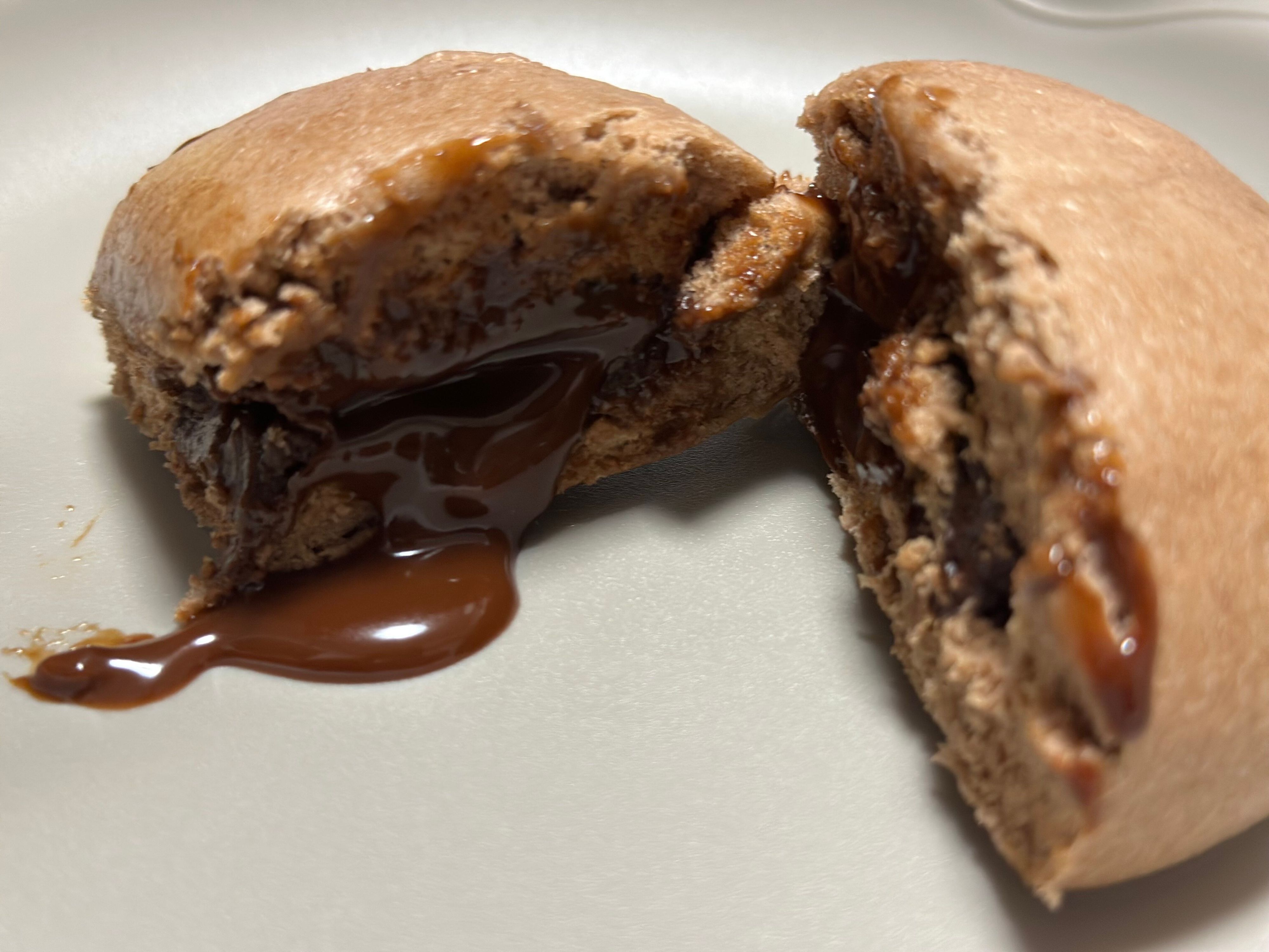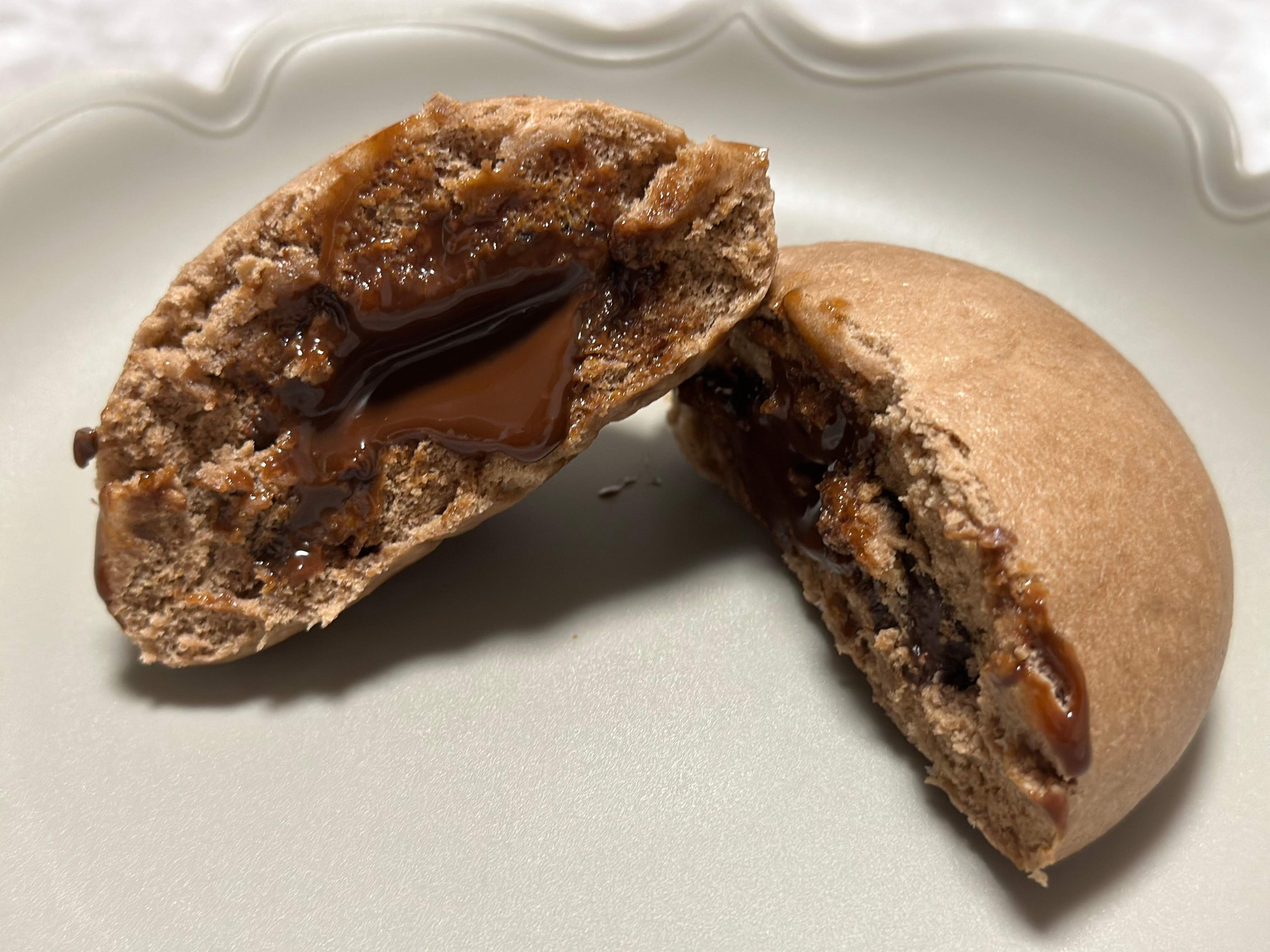 外側の生地はココアのような香りがしますが、そこまでショコラ感を主張する強い風味ではなく優しいお味で控えめな甘さ。