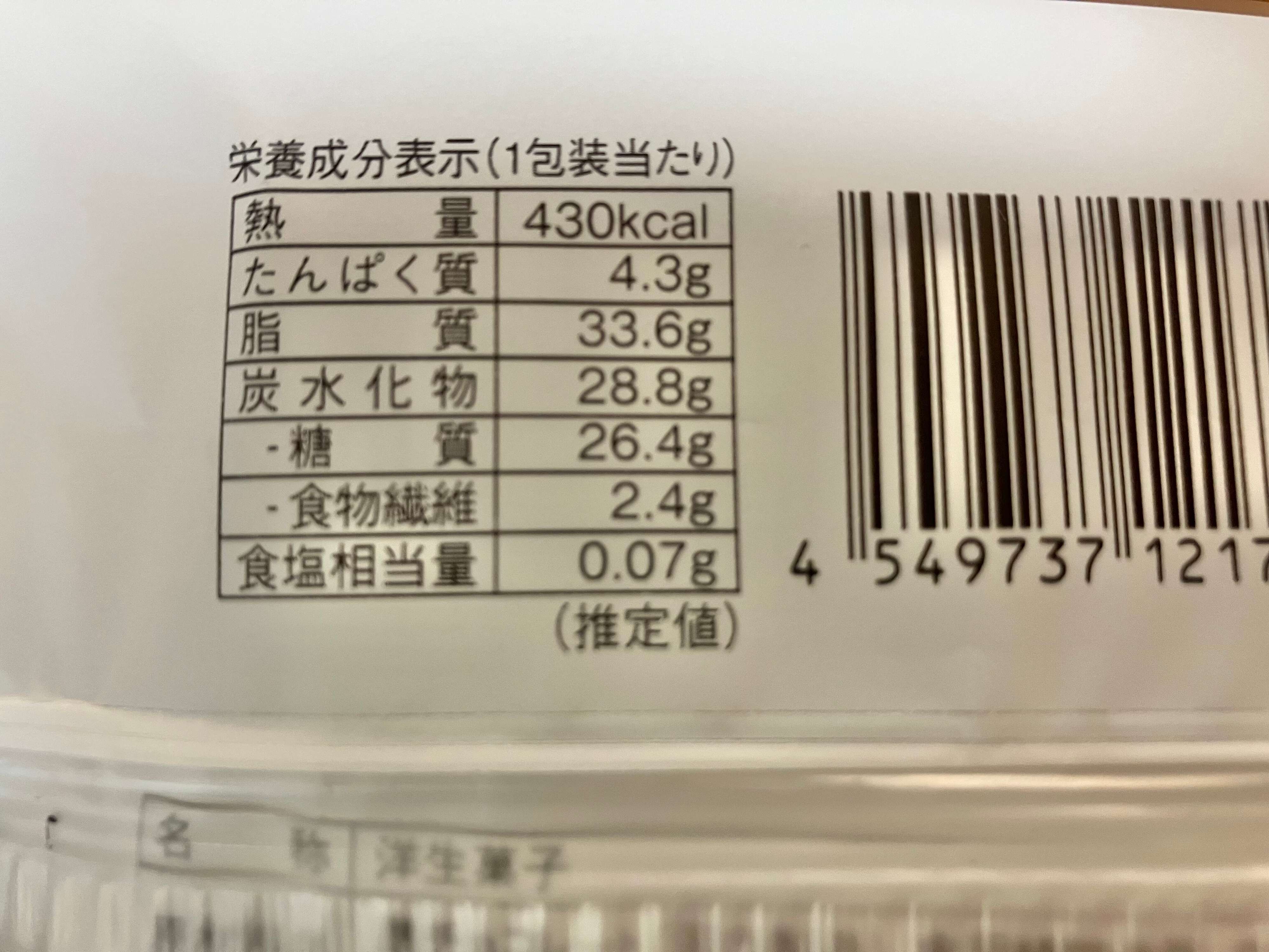 パッケージを開ける前に衝撃だったカロリー。この大きさで「1包装430kcal」ってだいぶ高いです!!
